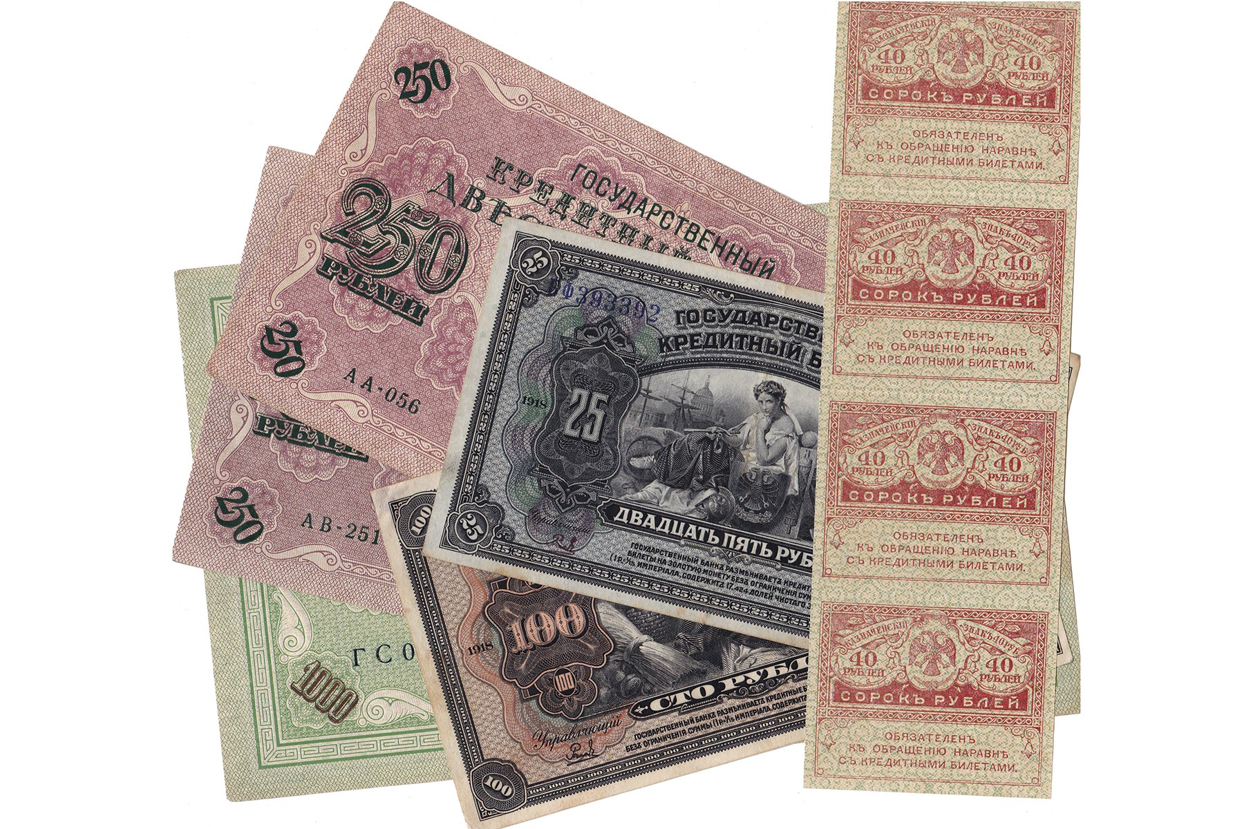 Lot (6) verschillende denominaties Russia periode 1917-1919. Pick 36, 37, 39, 39A, 40. VF.