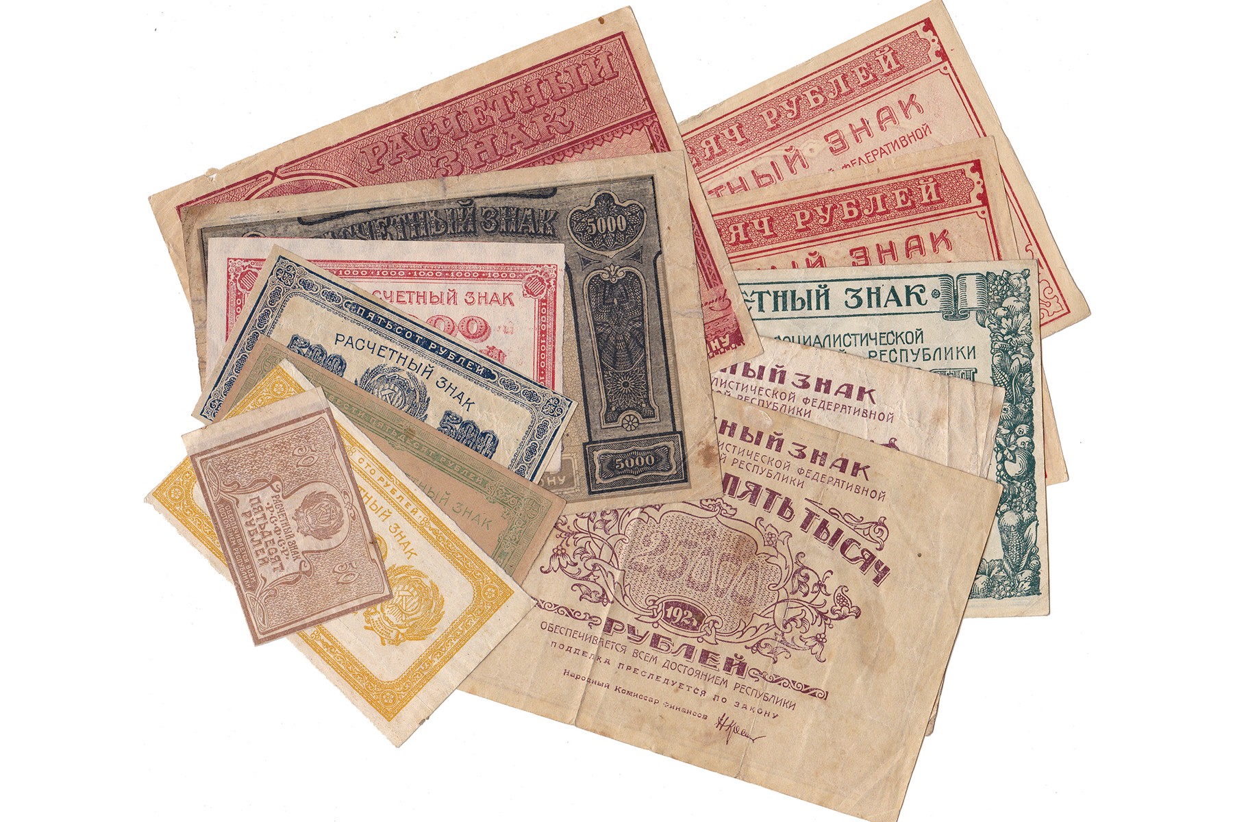 Lot (12) vrijwel complete serie 1921 issue 50 Rubles t/m 100000 Rubles. Pick 107, 108, 110 t/m 117. Fine / VF.