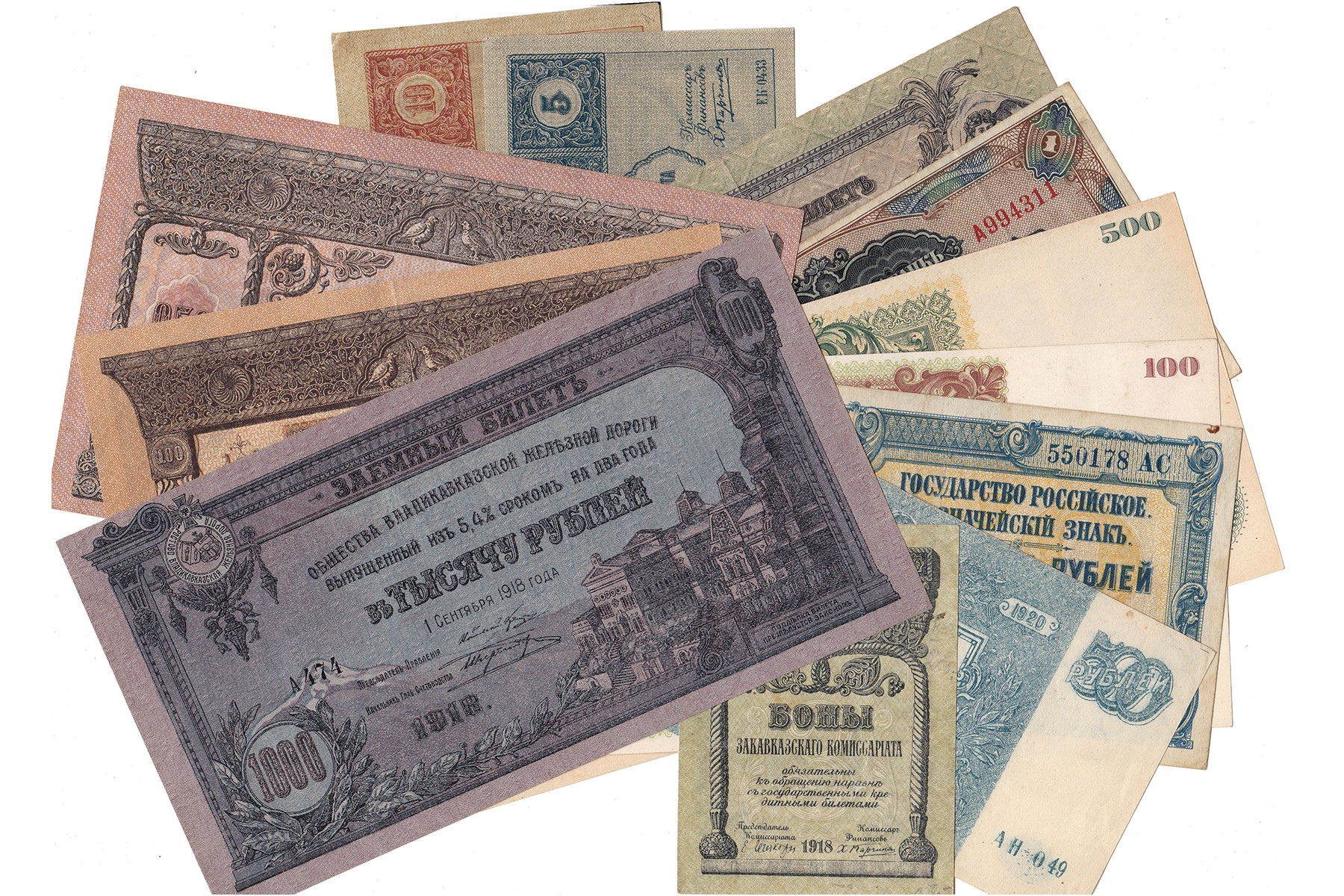 Lot (13) verschillende denominaties Russia periode 1918-1920. Pick S434, S438 t/m S440, S593, S596, S206 t/m S207. VF and better.