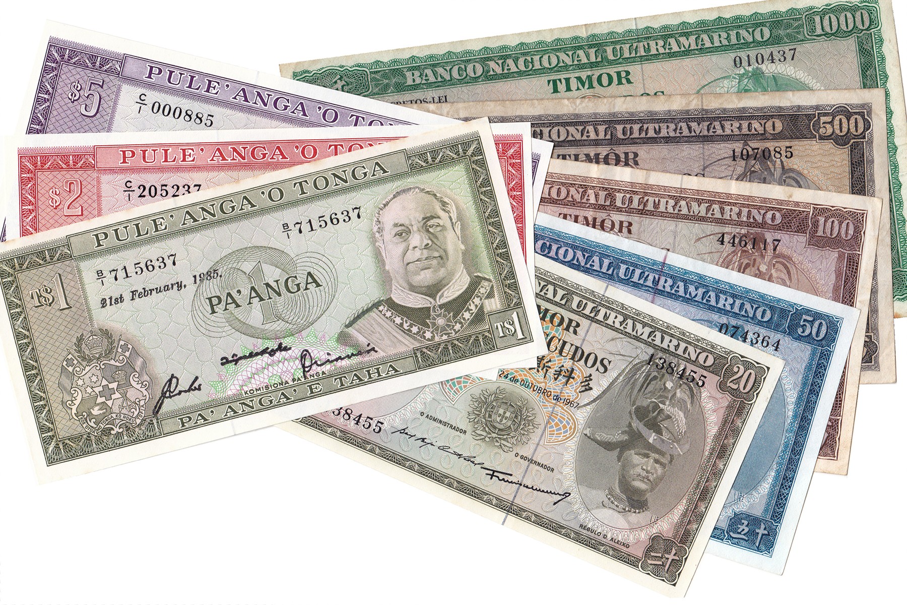 Lot (8) verschillende denominaties Timor en Tonga. Pick 26 t/m 30 en 19, 32, 133. VF and better.