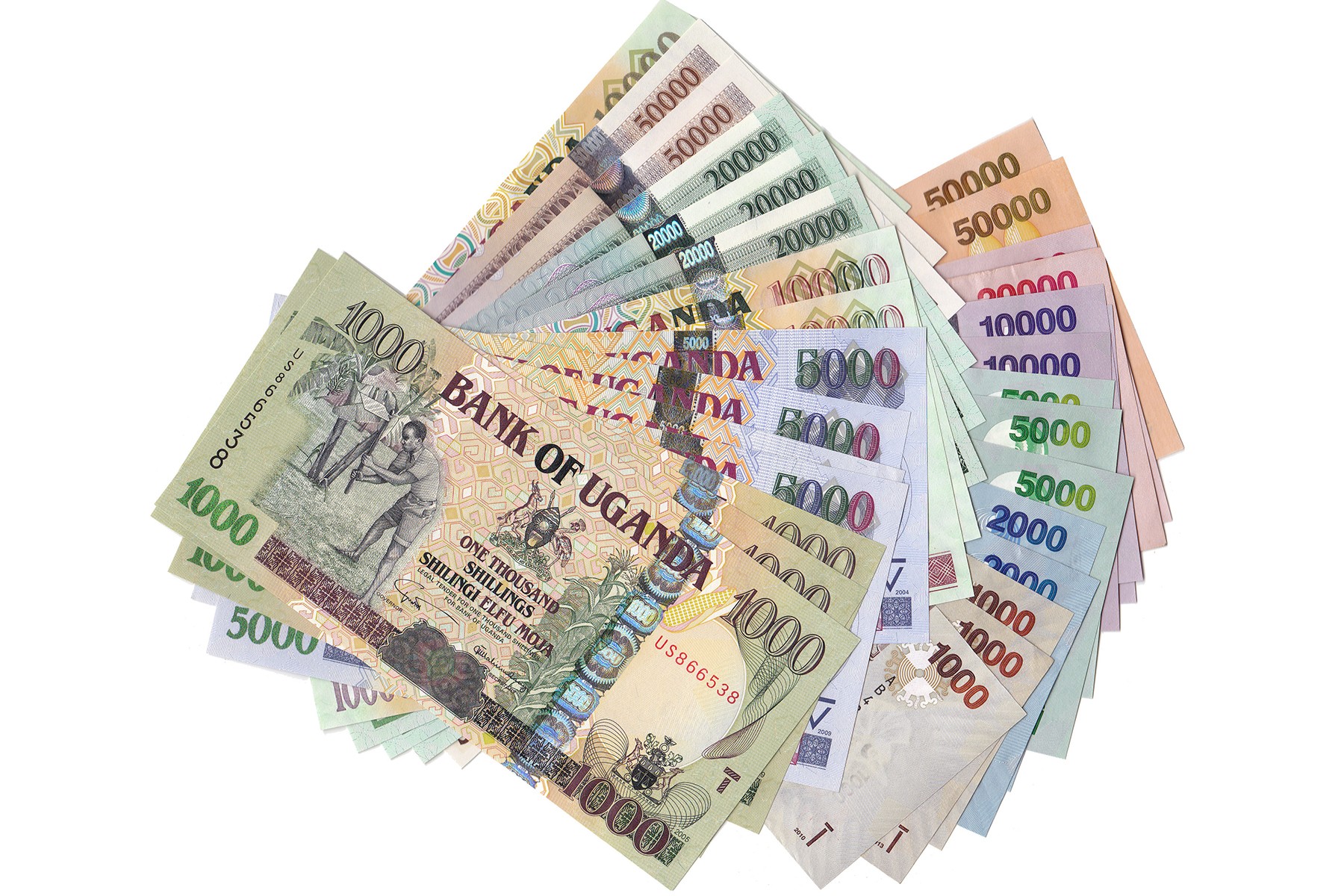 Lot (30) groot lot Uganda vrijwel compleet op Pick-nummer verzameld, periode 2003 t/m 2007 (incl. diverse variaties op Pick-nummer). Pick 43 t/m 54. Almost UNC.