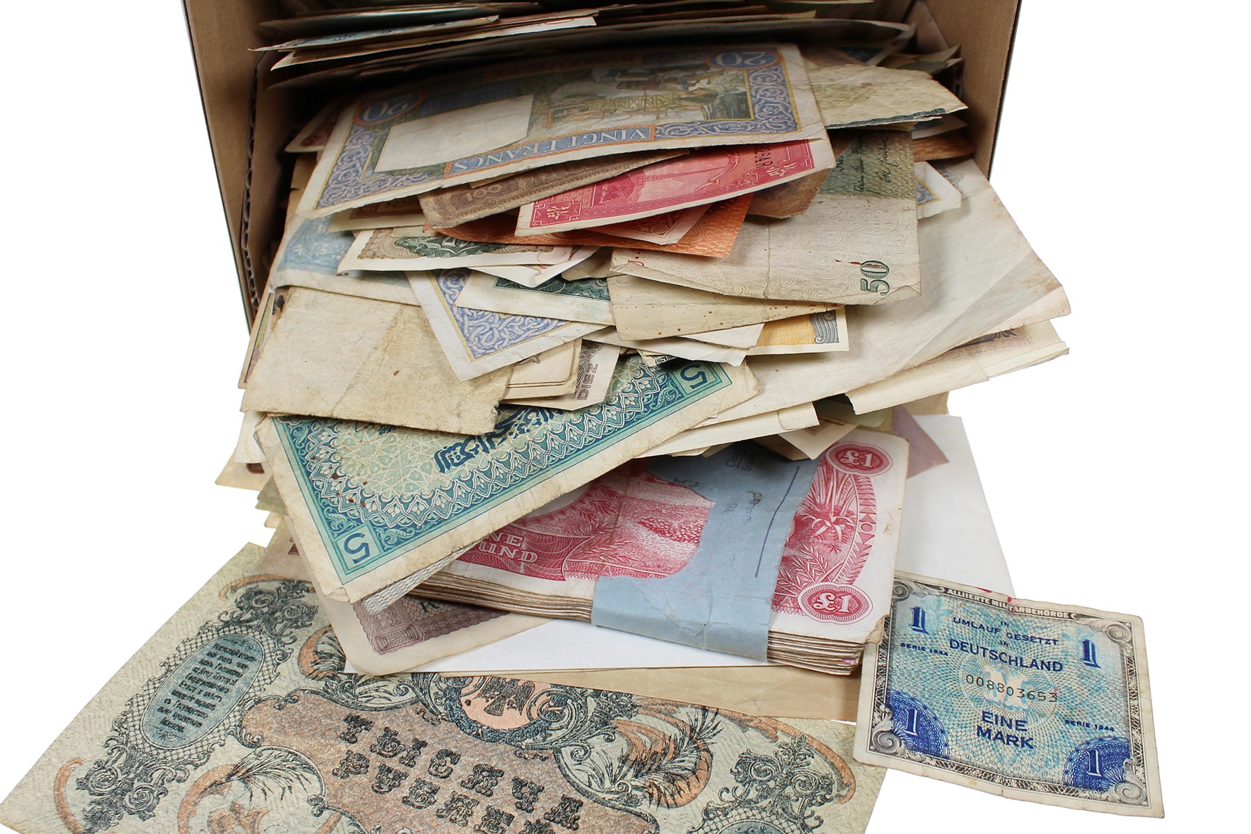 Doos met groot aantal voornamelijk gebruikte biljetten from all over the world. Voor dit soort lots hebben we nu kijkdagen!! Kijken kan lonen!!