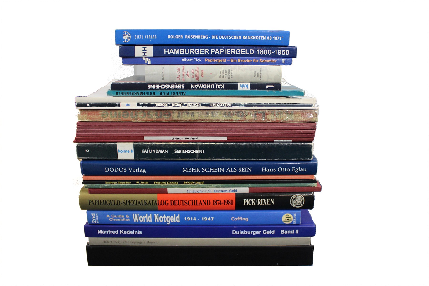 Lot (28) boeken betreffende Duits papieren noodgeld, w.o. Kai Lindman.