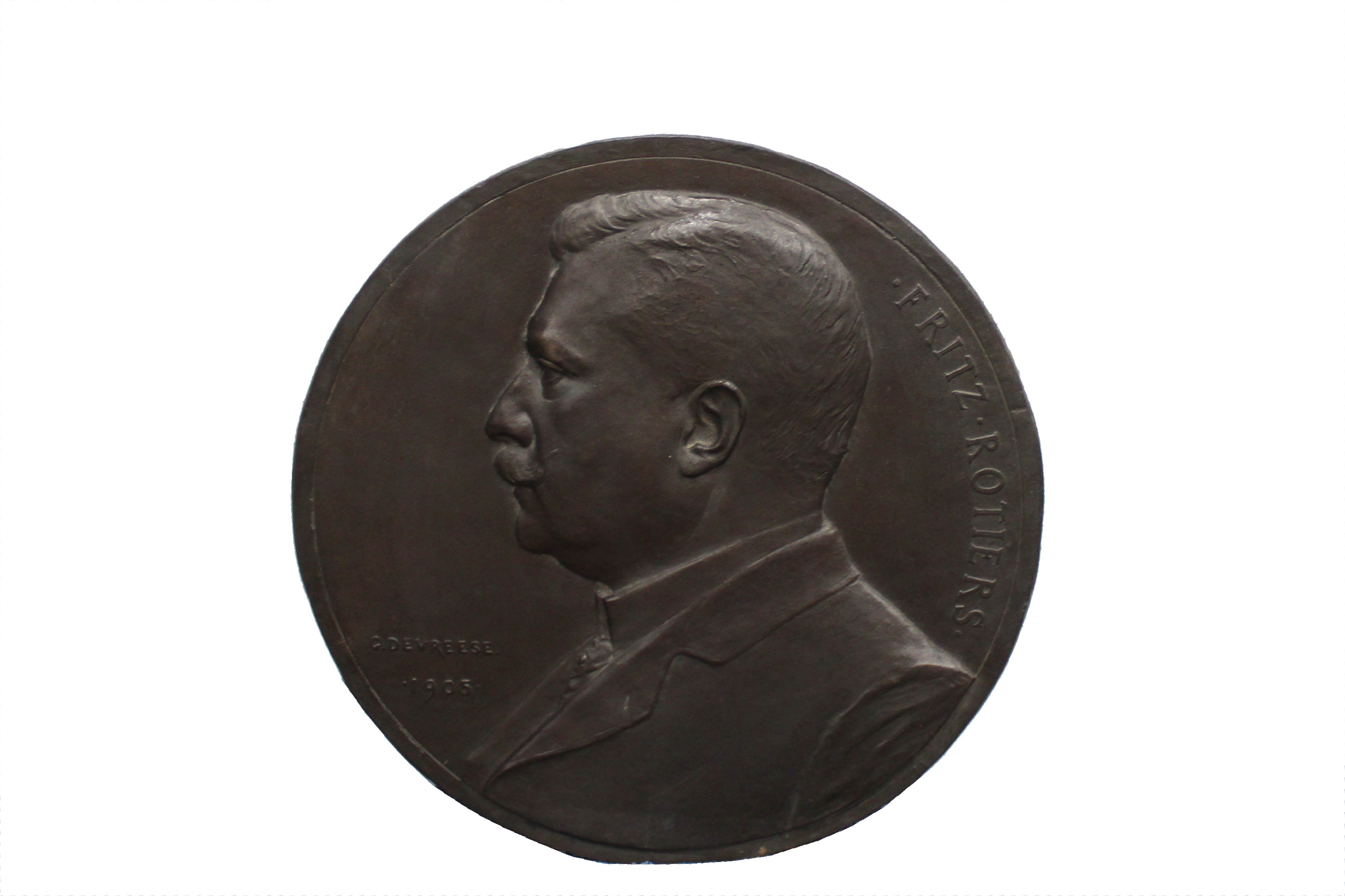1905 Fritz Rottiers. Buste naar links. Æ gegoten 325. Willenz 47; PVD 51. Bronzen reduceermodel [2,2 kg]. Prachtig.
