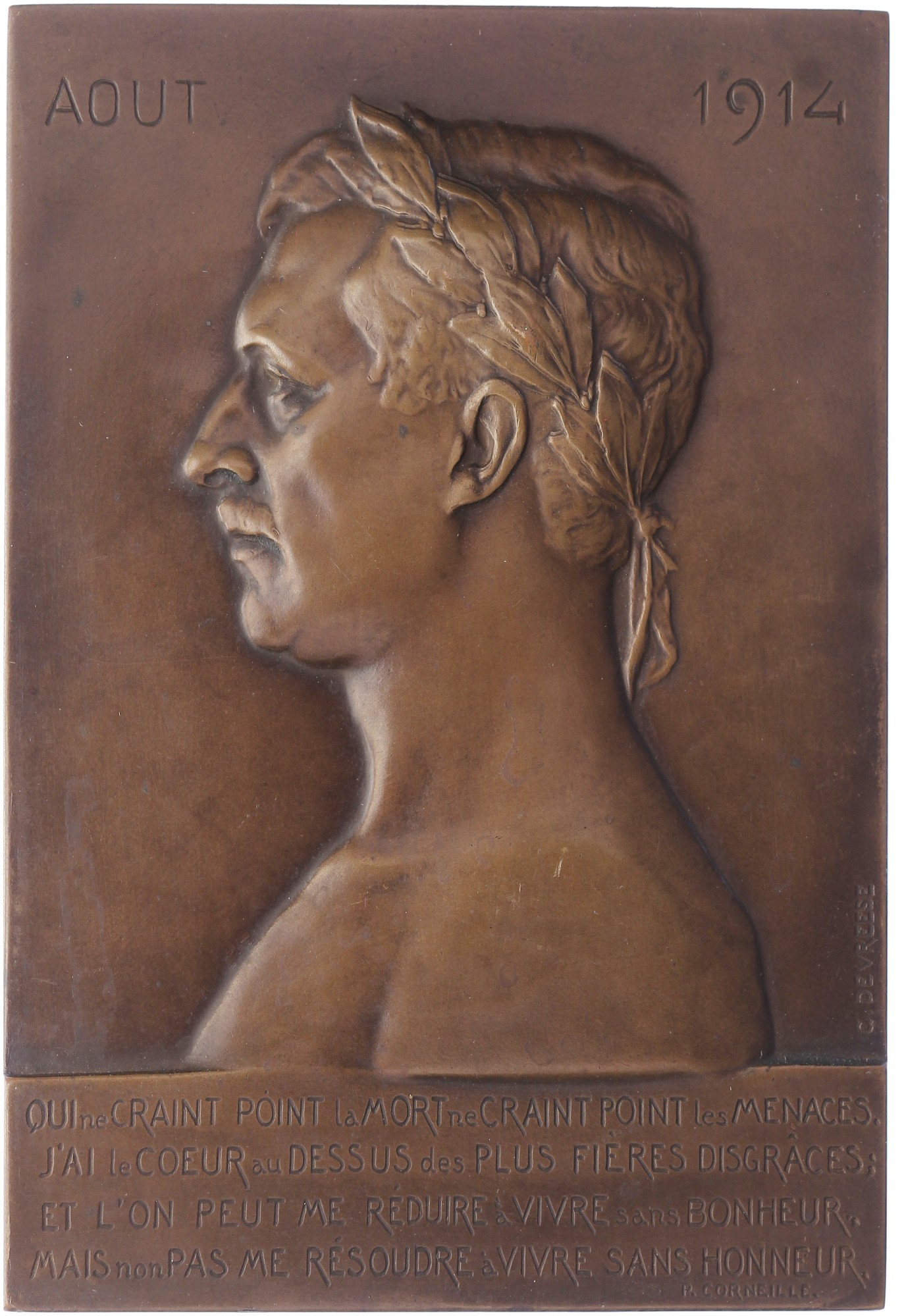 (1917) Koning Albert I gelauwerd. Naakte buste Albert I naar links; vierregelig opschrift in afsnede. / Blanco. Æ 90,6 x 61,3. Willenz 185; PVD 199. Prachtig.