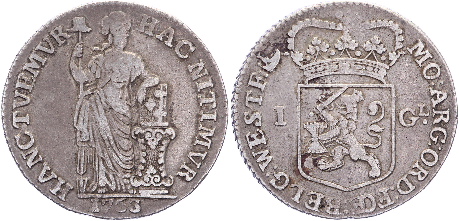 1 Gulden 1763. Delm. 1180; CNM 2.46.57; HPM 48. Vrijwel zeer fraai.