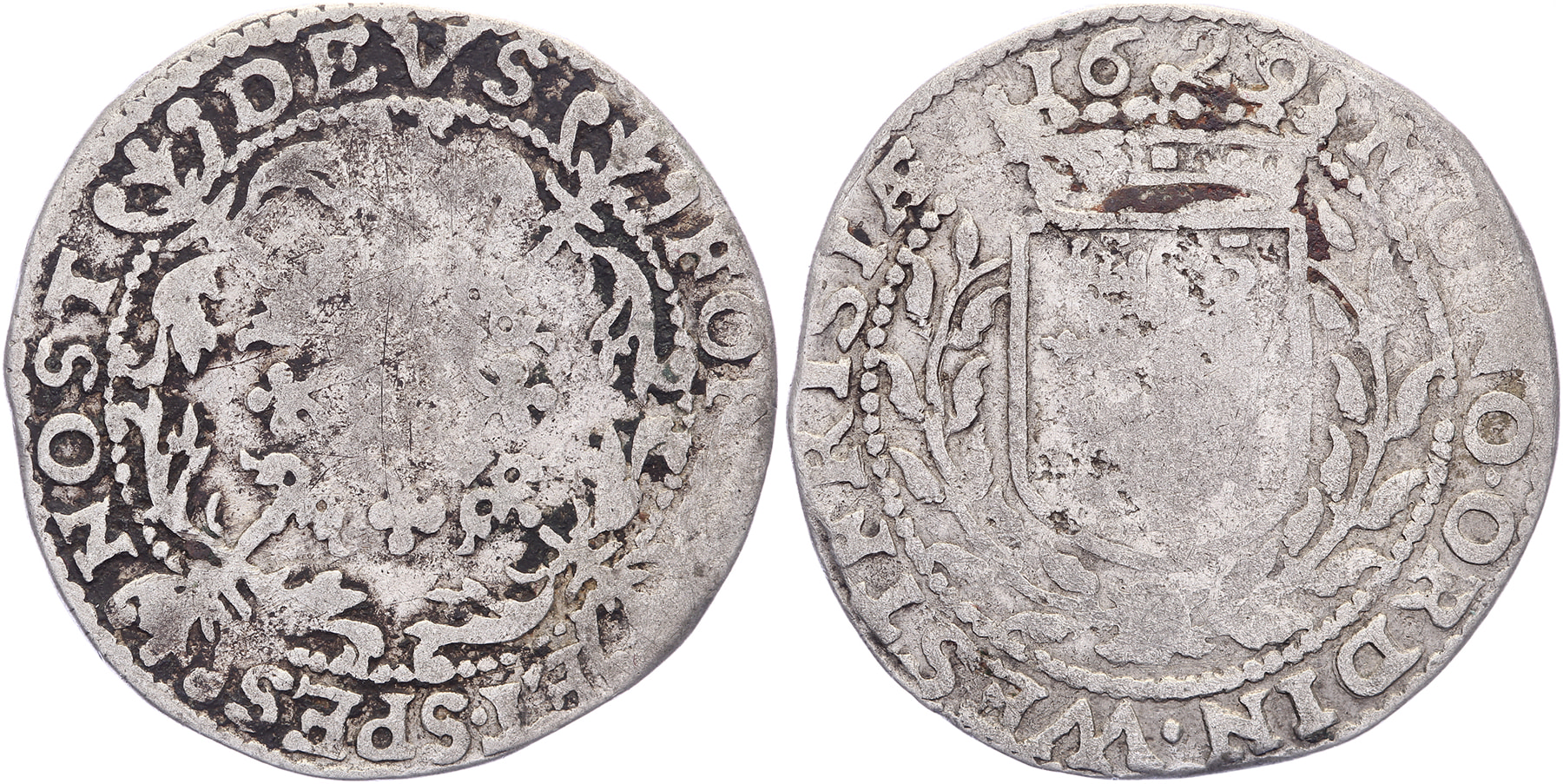 Roosschelling van 6 stuiver 1629. Verk. 71.4; CNM 2.46.63. Zeer fraai.