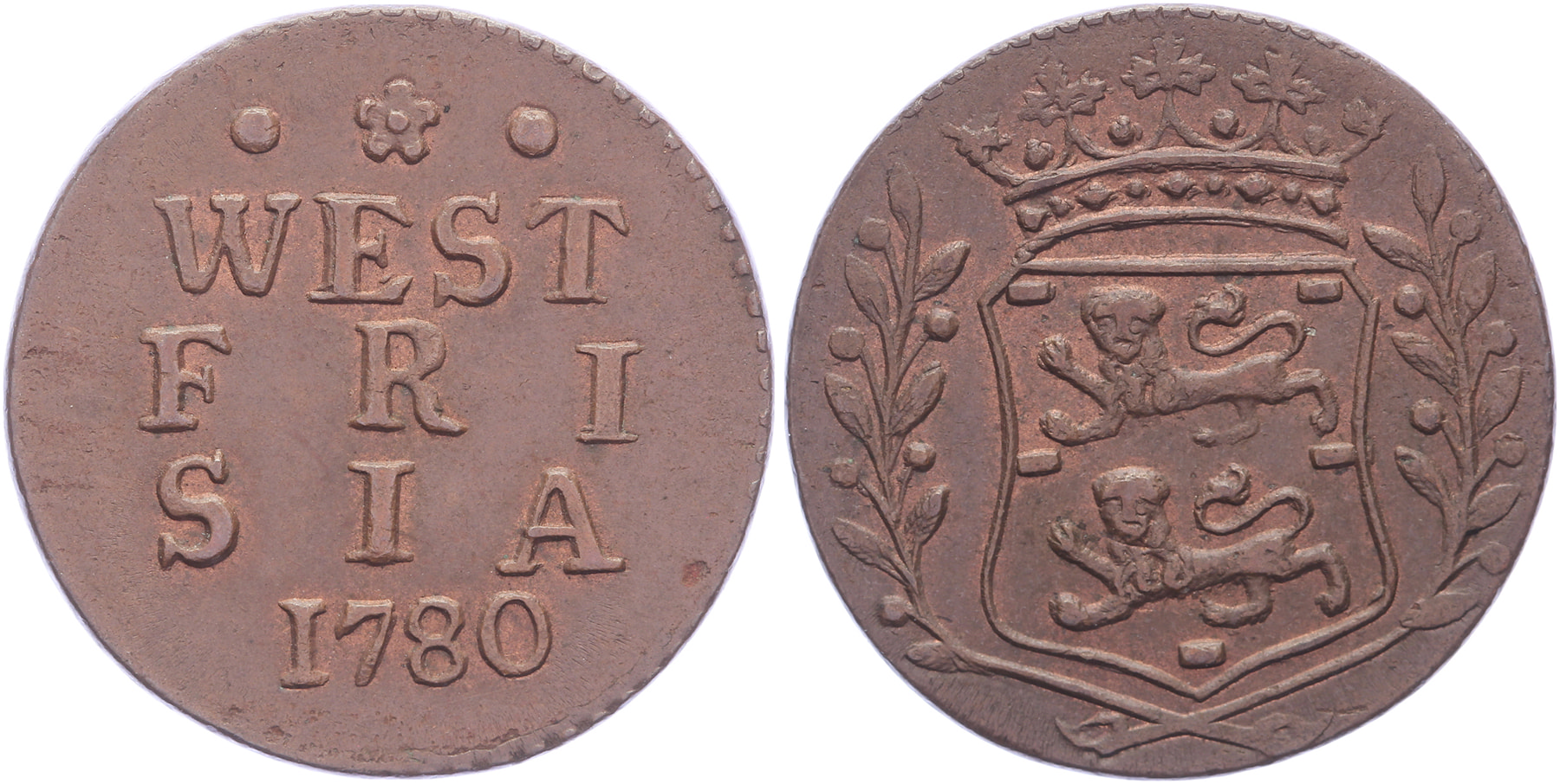 Duit 1780. PW 3014; CNM 2.46.101; HPM 71. Lichte originele kleur. Zeer fraai / Prachtig.