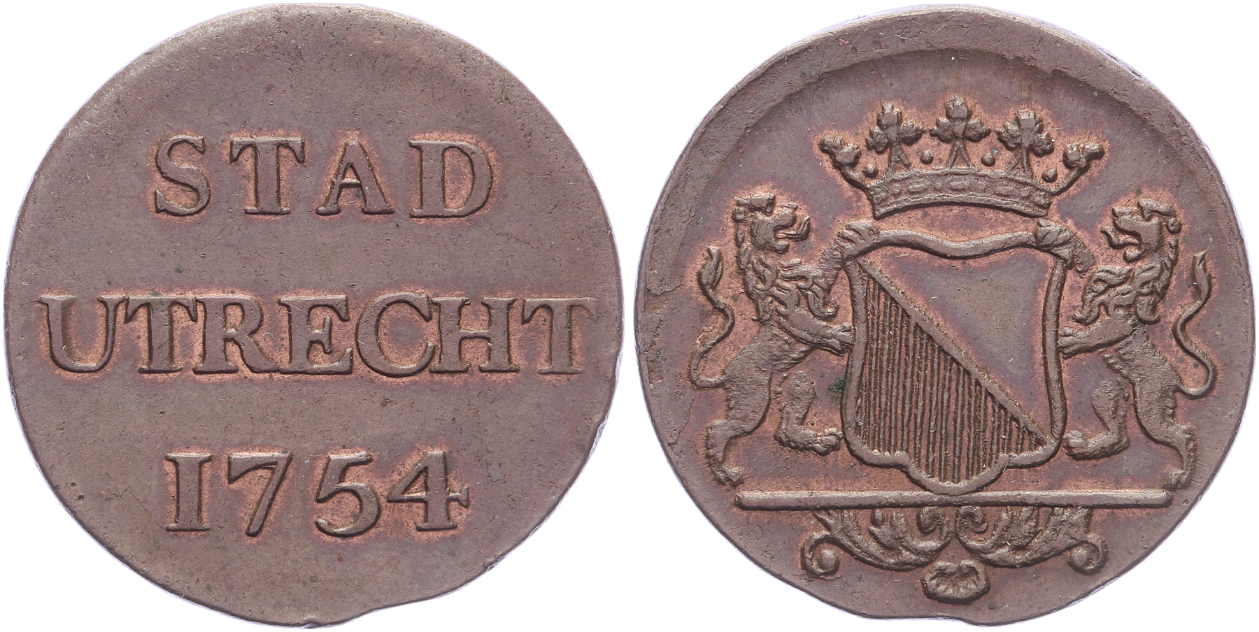 Duit 1754. PW 5111; CNM 2.44.21; HPM 20. Iets decentrisch, originele kleur. Vrijwel FDC.