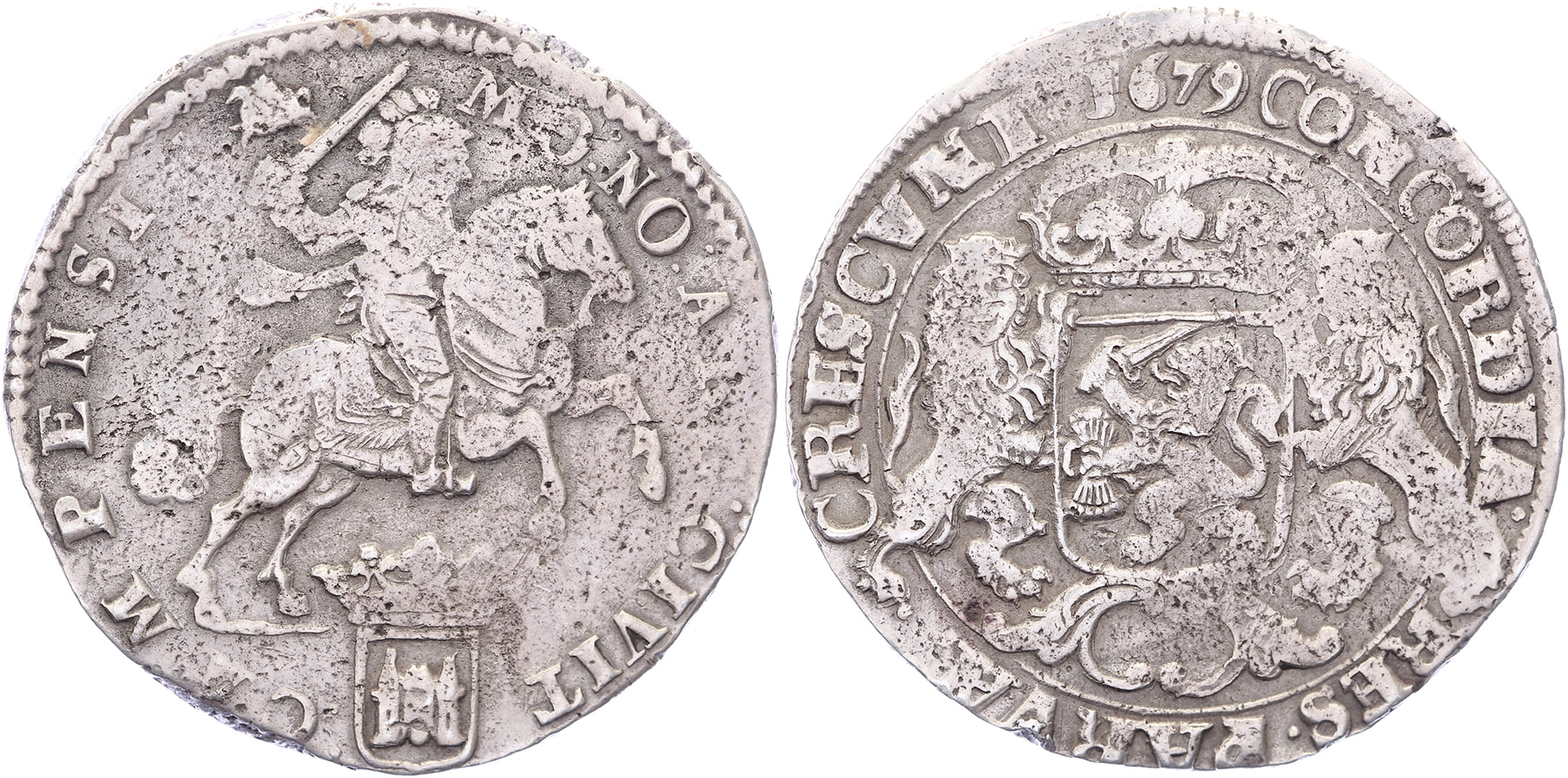 Rijder of dukaton 1679. Delm. 1040; CNM 2.30.55. R. Licht opgewreven. Fraai.