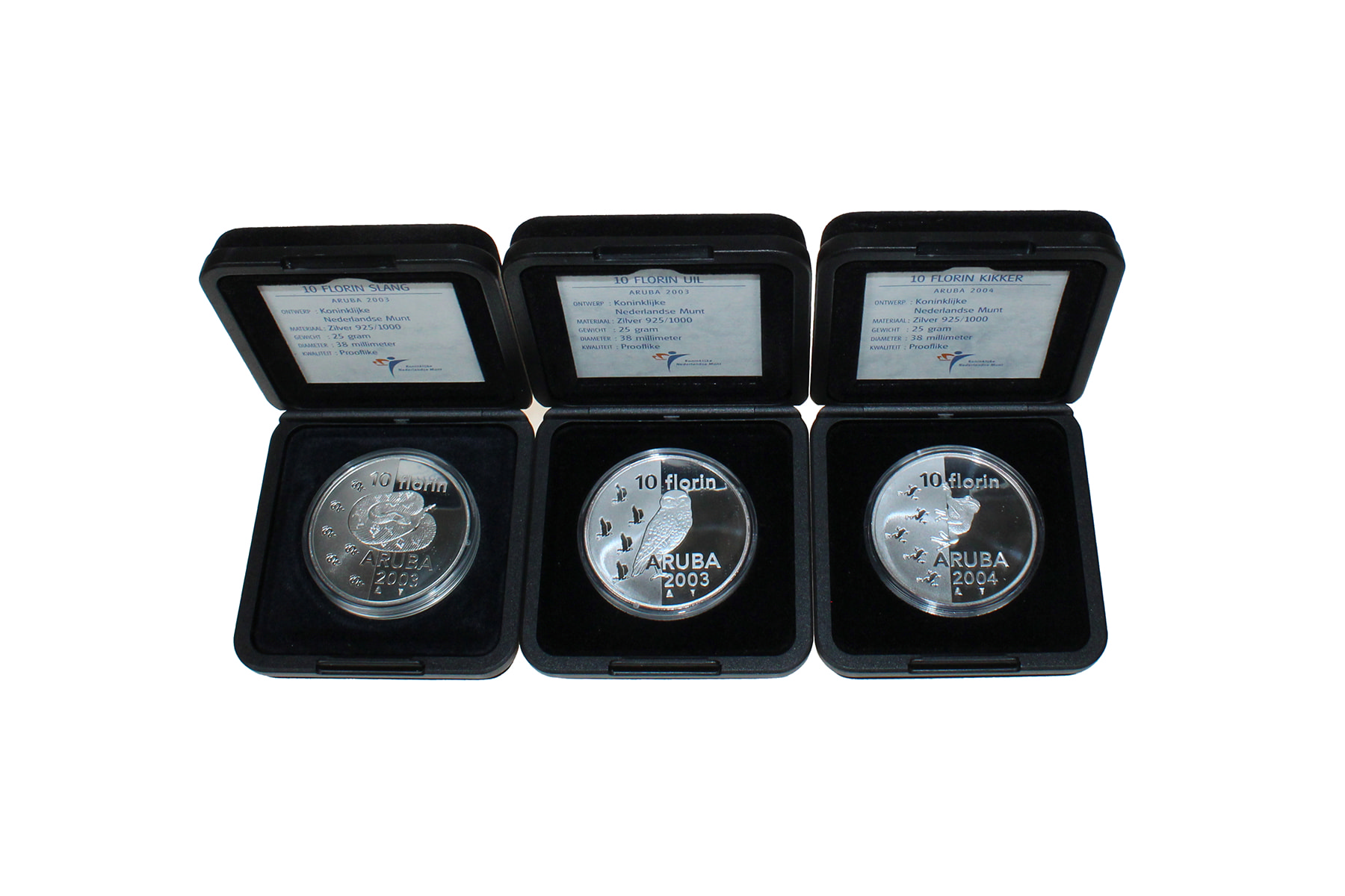 Lot (3) 10 Florin 2003 - Slangen; 2003 - Uilen; 2004 - Kikkers. Proof in originele verpakking.