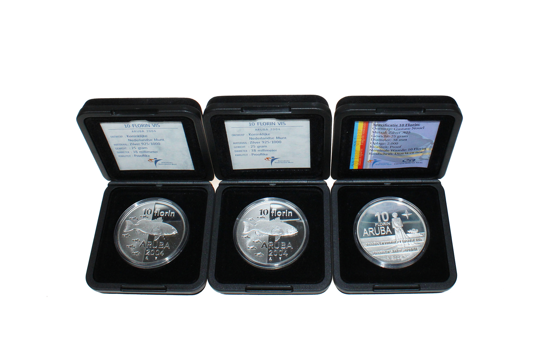 Lot (3) 10 Florin 2004 - Vissen (2); 2006 - 20 jaar Status Aparte. Proof in originele verpakking.