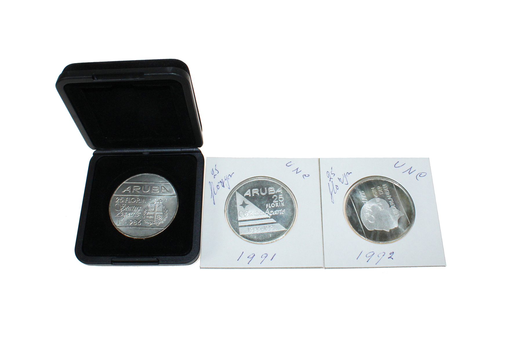 Lot (3) 25 Florin 1986 - Status Aparte; 1991 - 5 jaar Status Aparte; 1992 - Olympische Spelen Barcelona. Diverse kwaliteiten.