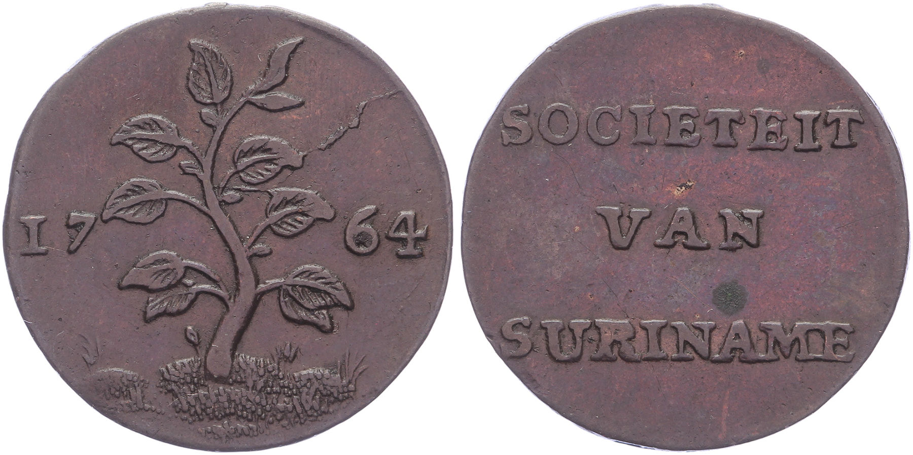 Duit 1764 cacaoplant. Scholten 1437; CNO 75.6. Zeer fraai / Prachtig.
