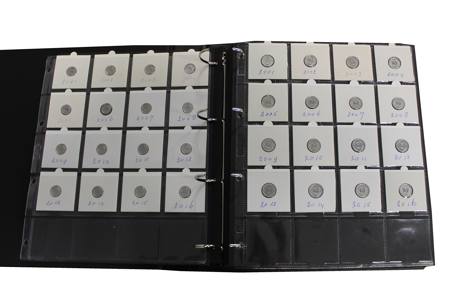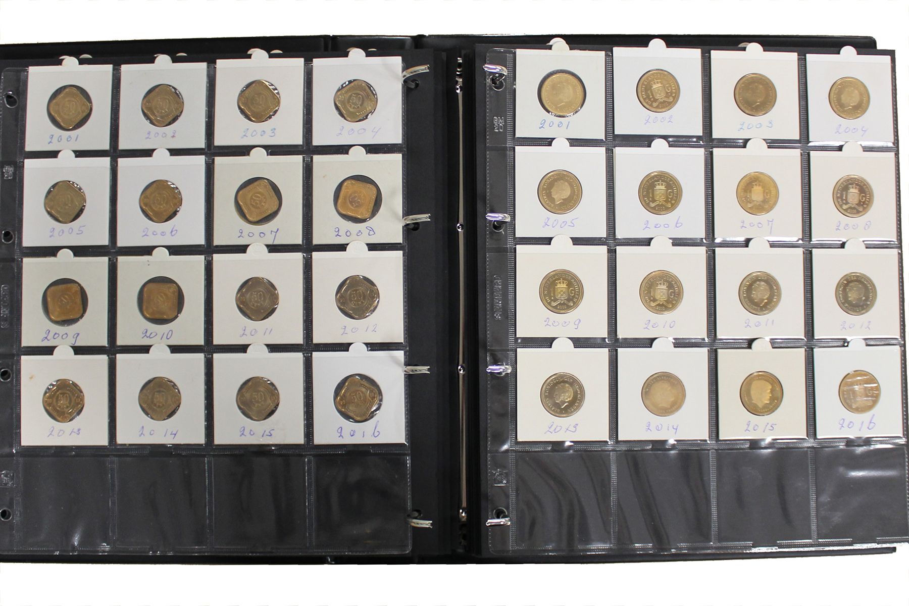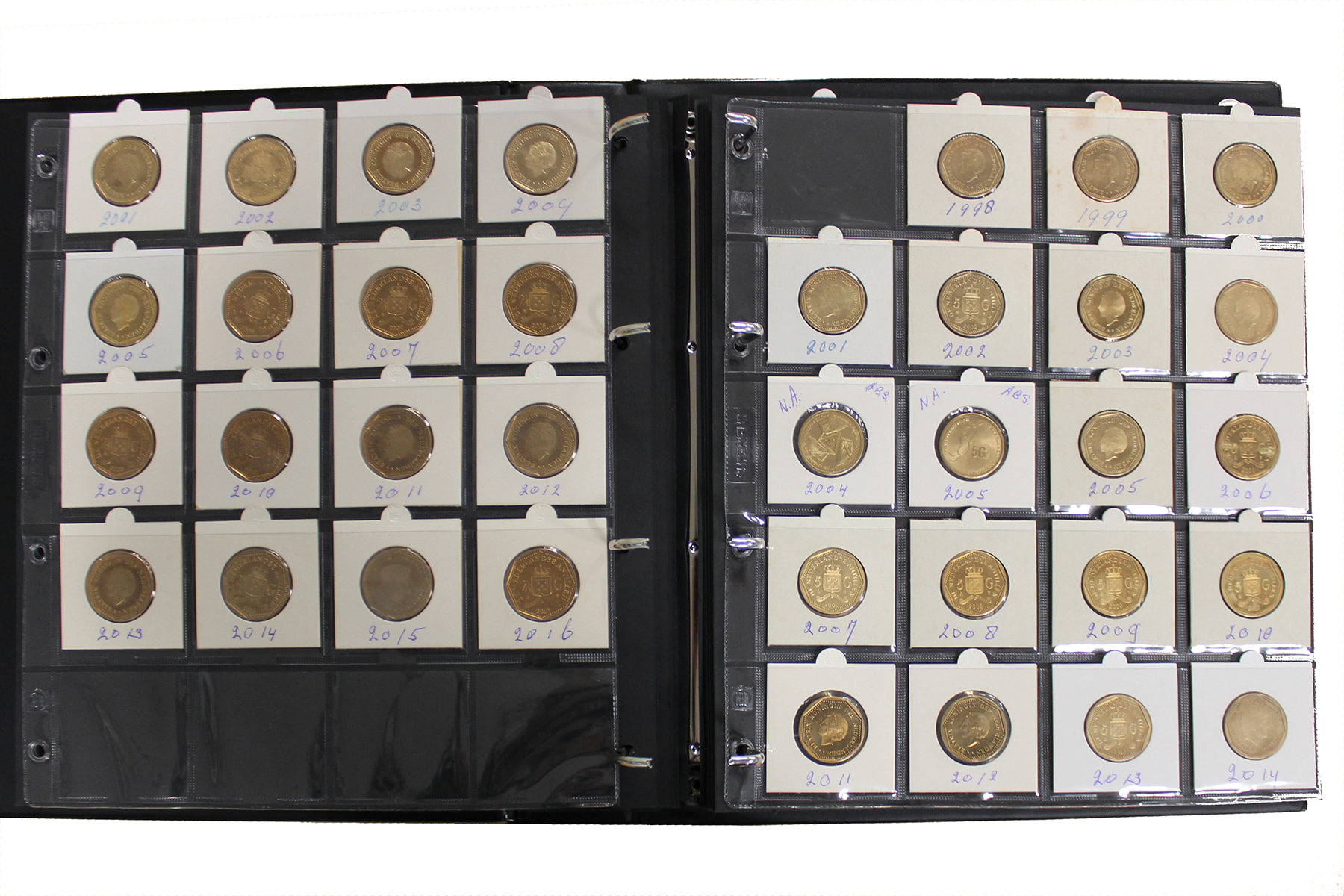 Groen album met een vrijwel complete jaartalverzameling van circulatiedenominaties van de Nederlandse Antillen. Veel FDC en UNC.