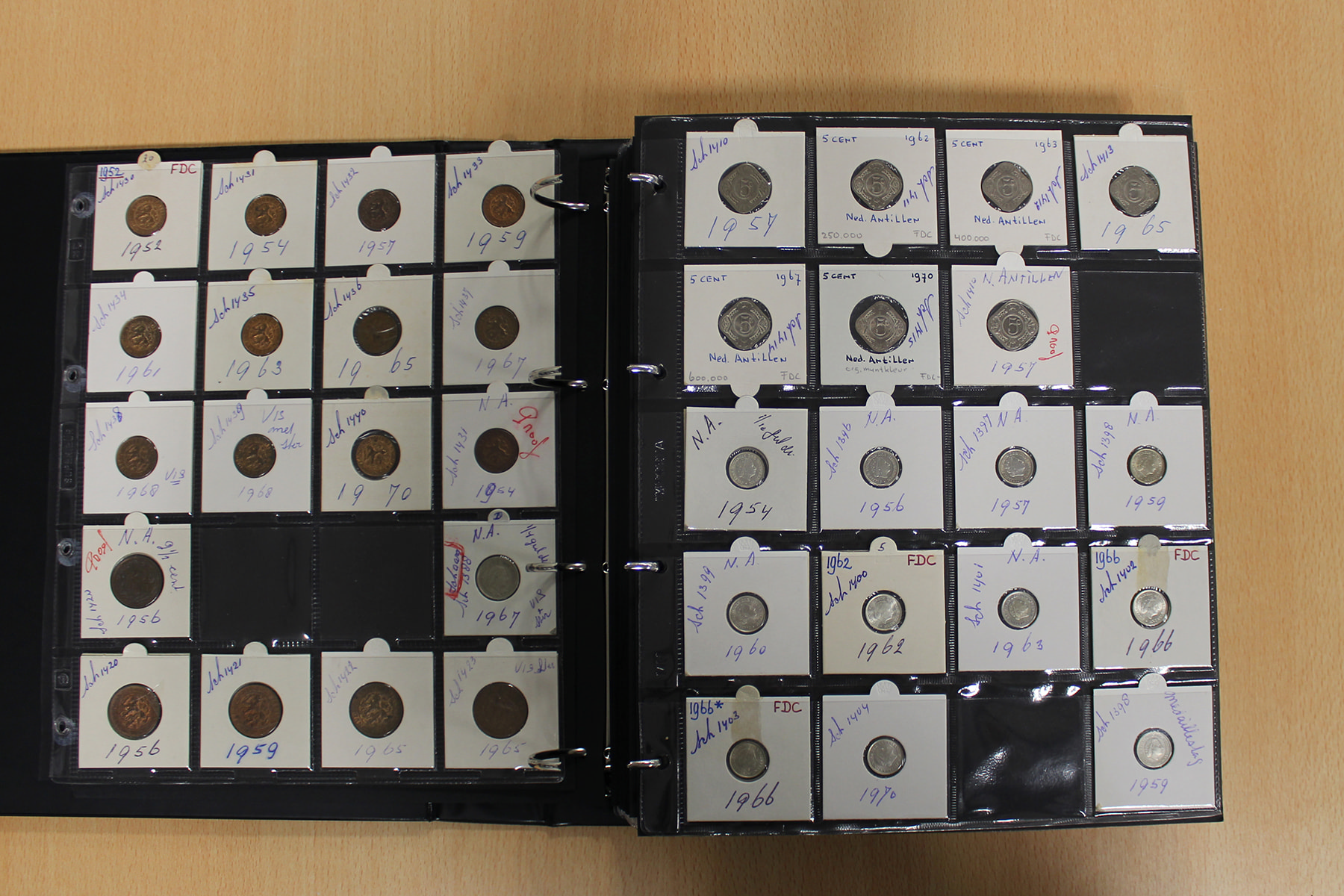 Groen album met een vrijwel complete jaartalverzameling van circulatiedenominaties van de Nederlandse Antillen. Enkele proof, verder veel UNC.
