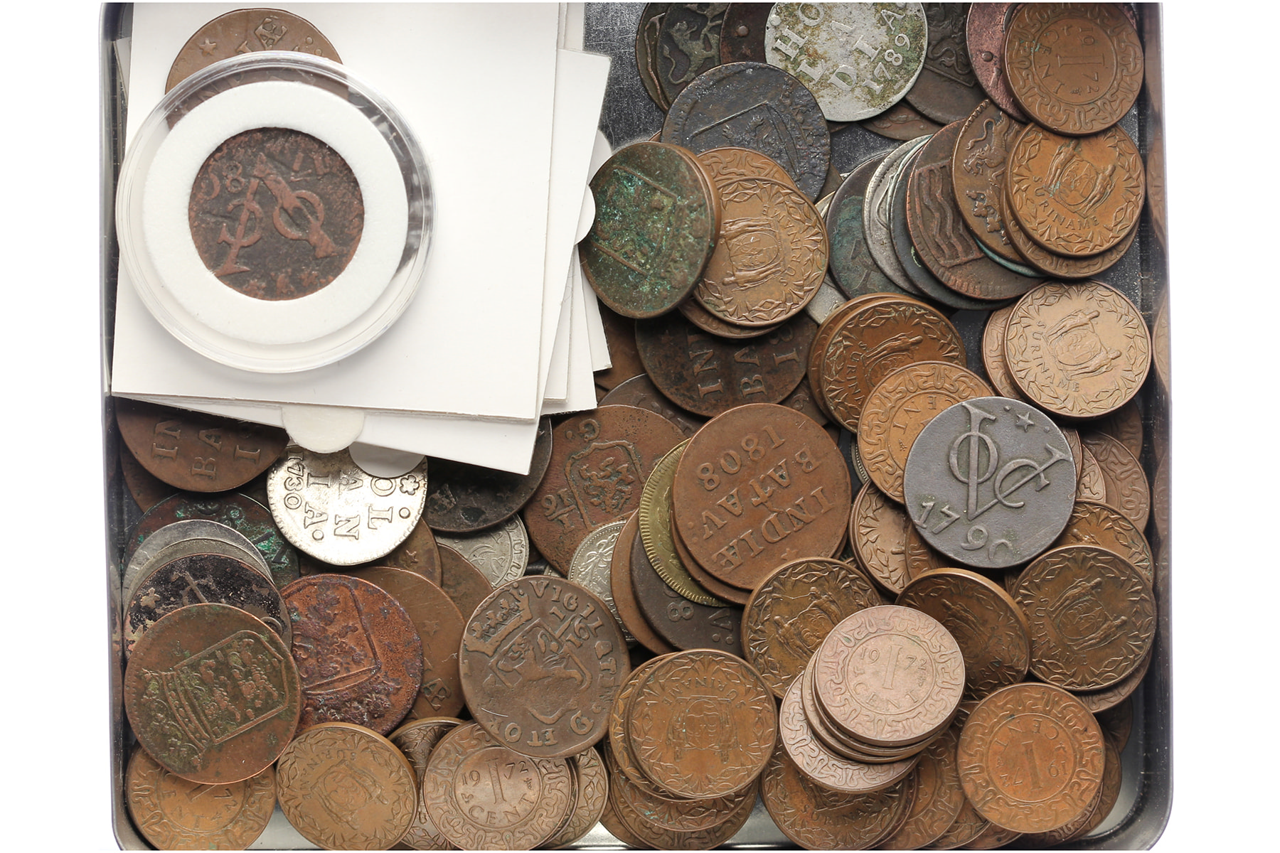 Blikje met voornamelijk onuitgezocht Nederlands-Indië.