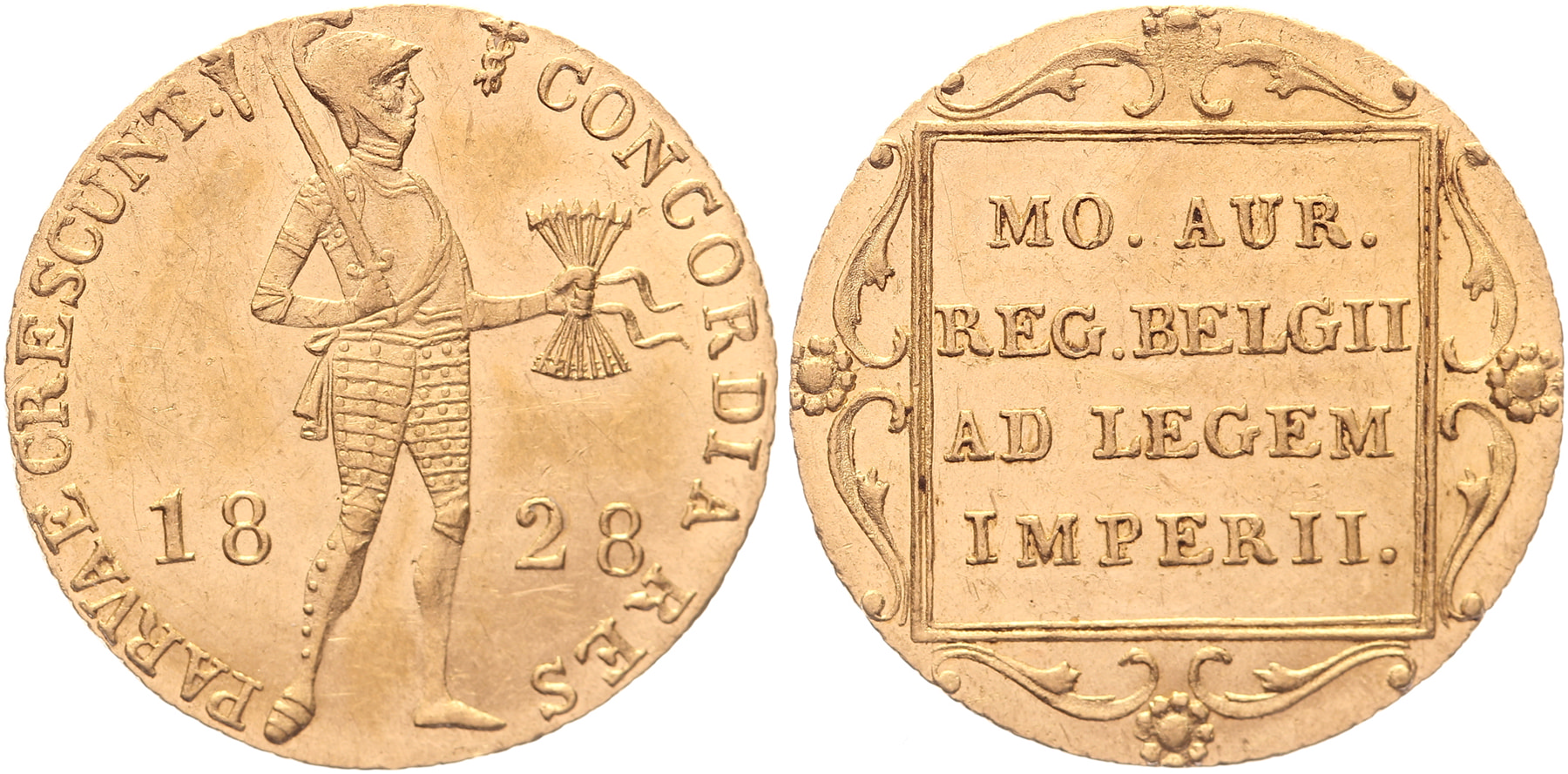 Dukaat 1828 Utrecht, mmt. fakkel LSch. 228; Sch. 212. Russ. slag Prachtig