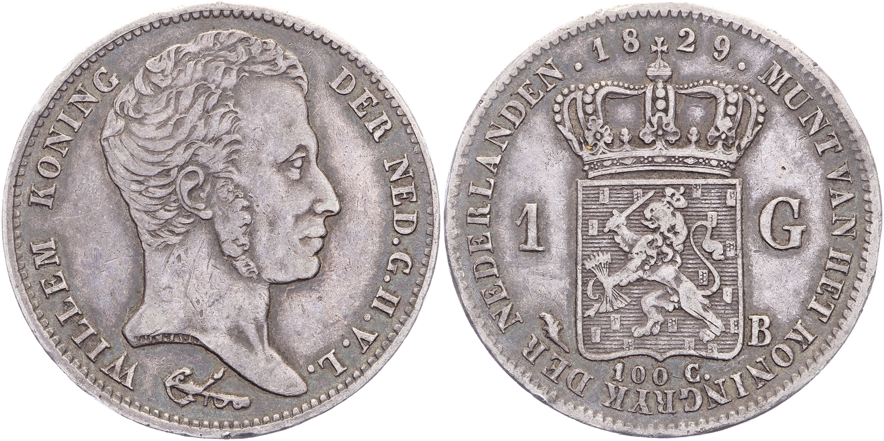 1 Gulden 1829 uit 182_ Brussel, mmt. palmtak. LSch. 280; Sch. 271 Ruim zeer fraai