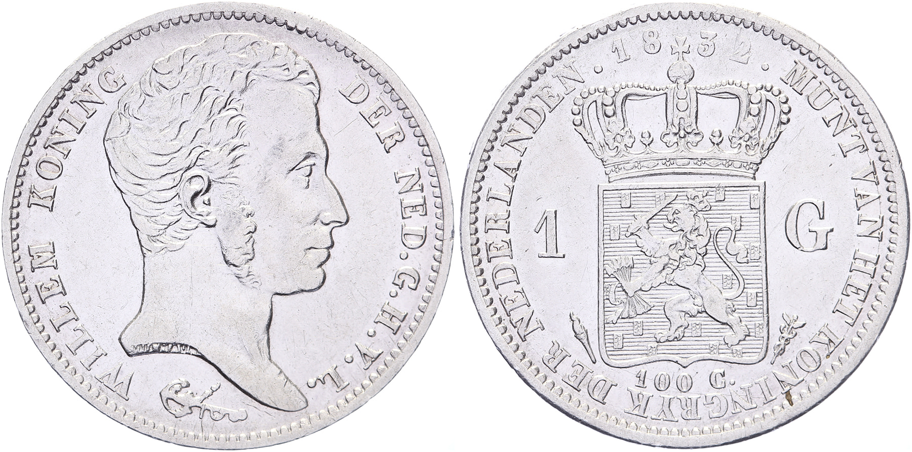 1 Gulden 1832 Utrecht, mmt. fakkel LSch. 275; Sch. 267. Kleine krasjes Zeer fraai