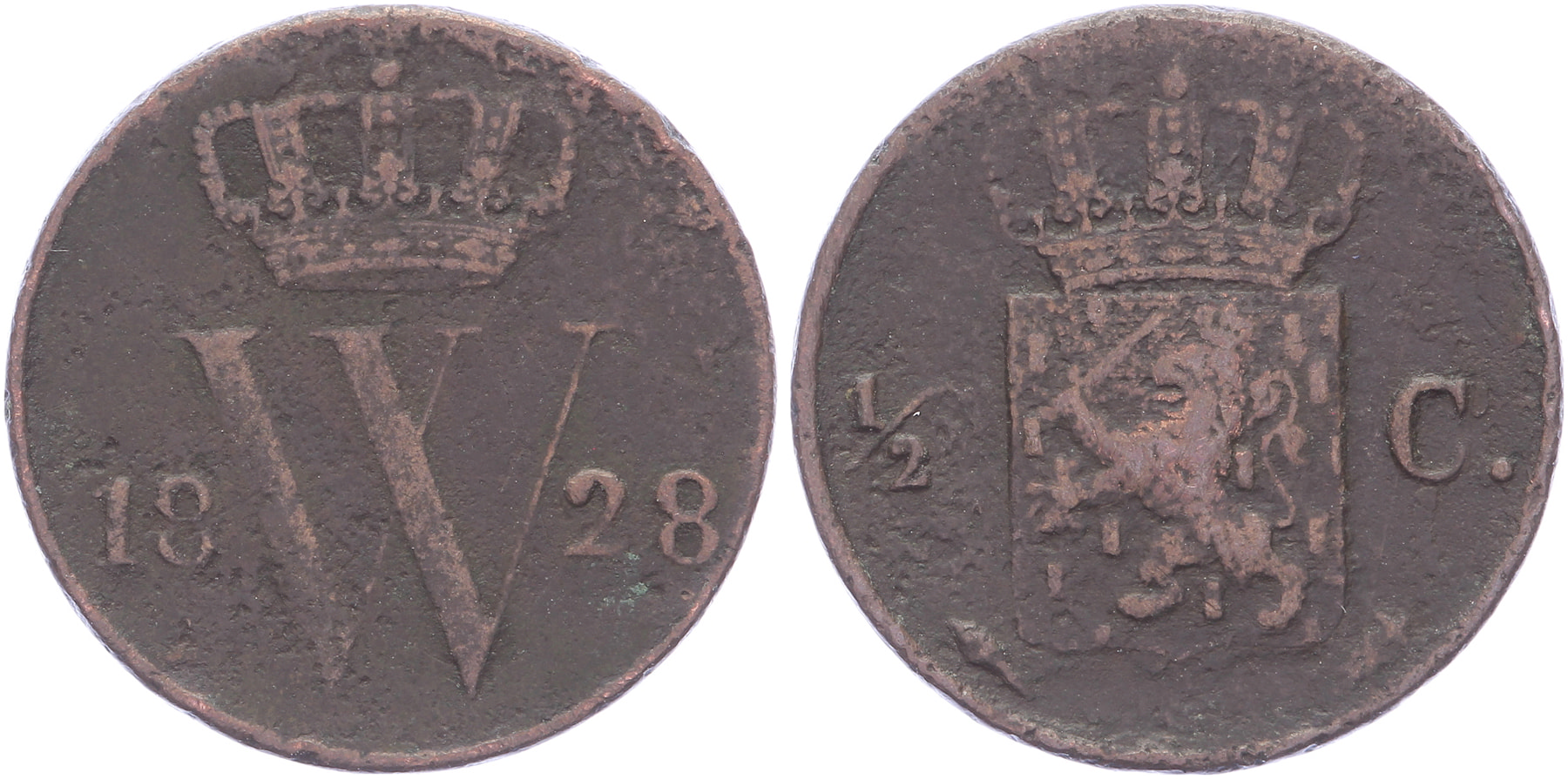 ½ Cent 1828 Utrecht, mmt. fakkel LSch. 353; Sch. 358 Bijna zeer fraai