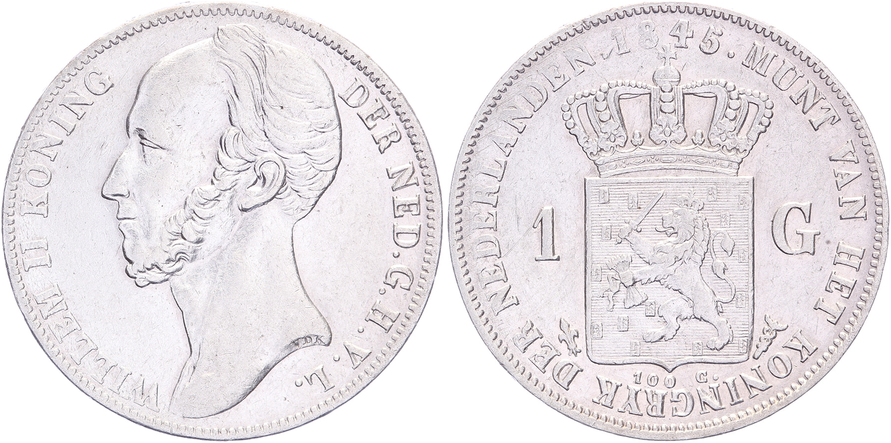 1 Gulden 1845 mmt. lelie LSch. 400; Sch. 522a Ruim zfr / Bijna pr.