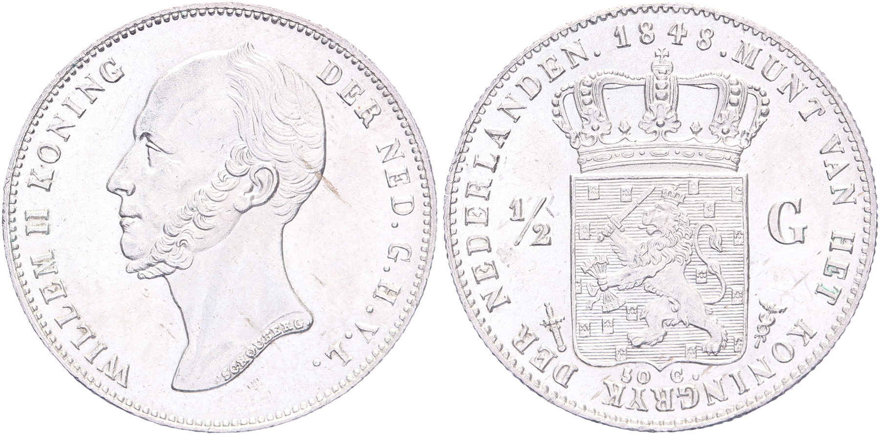 ½ Gulden 1848 mmt. zwaard LSch. 410; Sch. 531 Ruim pr. / Bijna FDC