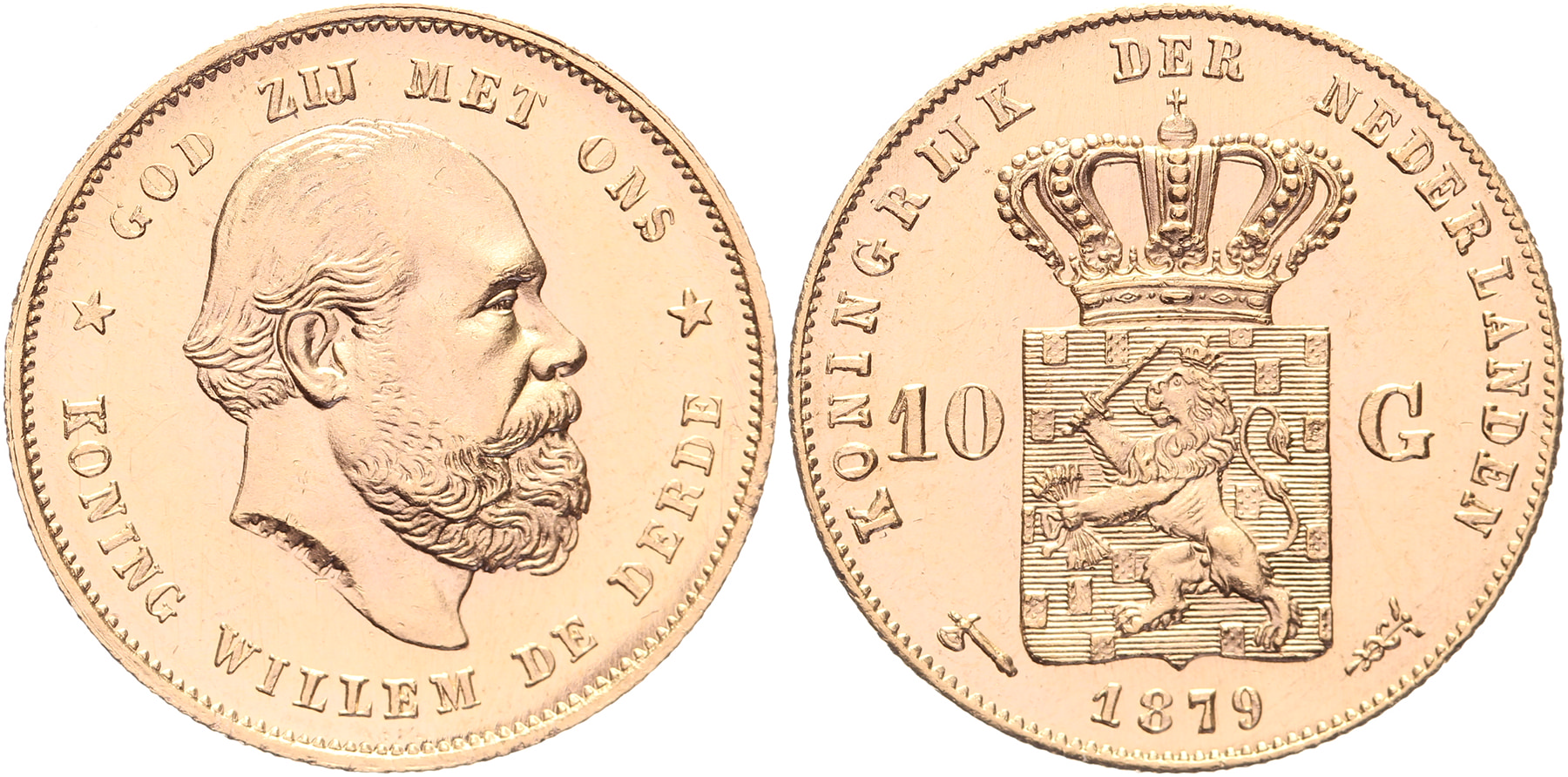 10 Gulden 1879 mmt. bijl LSch. 434; Sch. 552 Prooflike