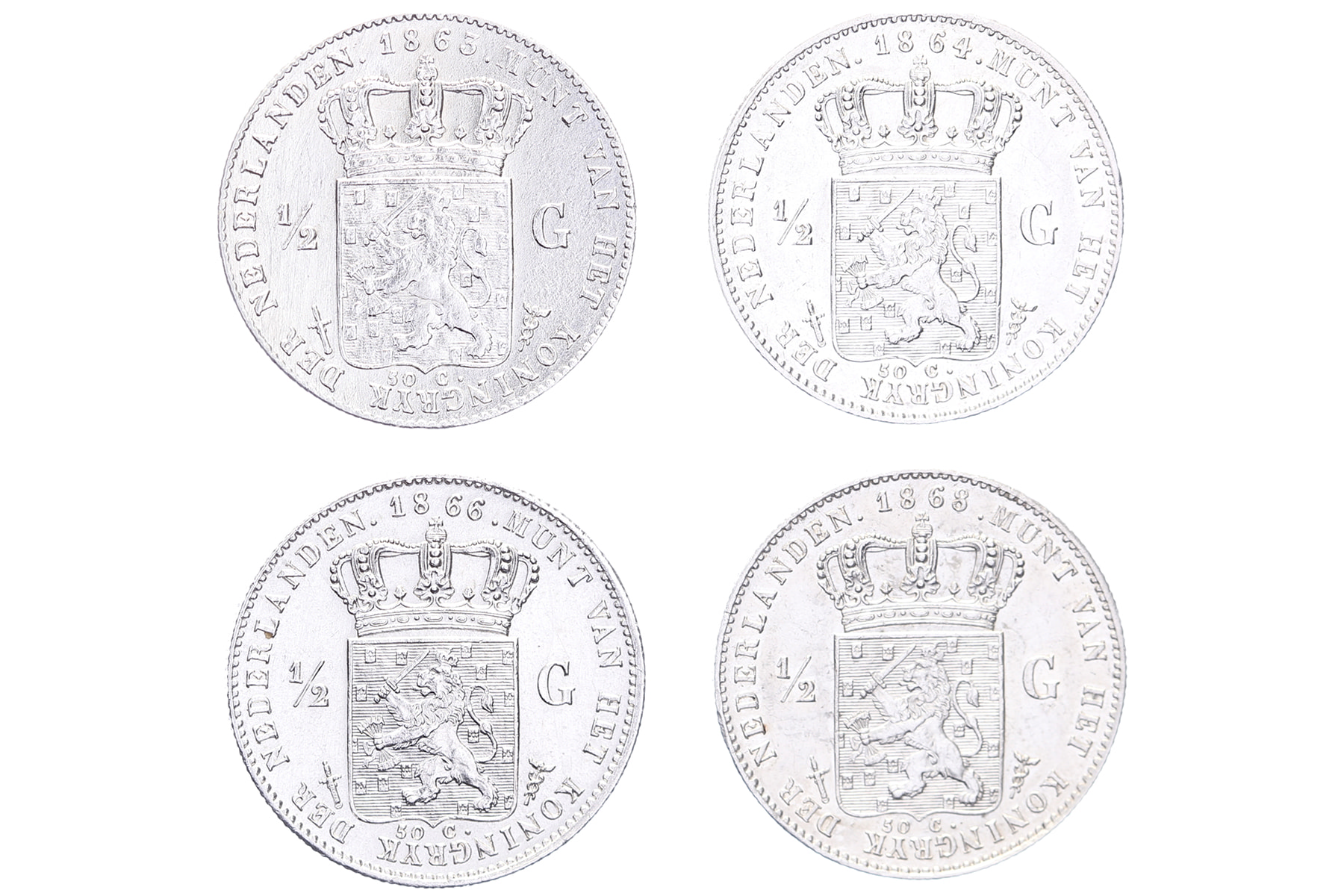 Lot (4) ½ Gulden 1863, 1864, 1866 en 1868 LSch. 510-513; Sch. 630-633 Ruim zfr. / Prachtig