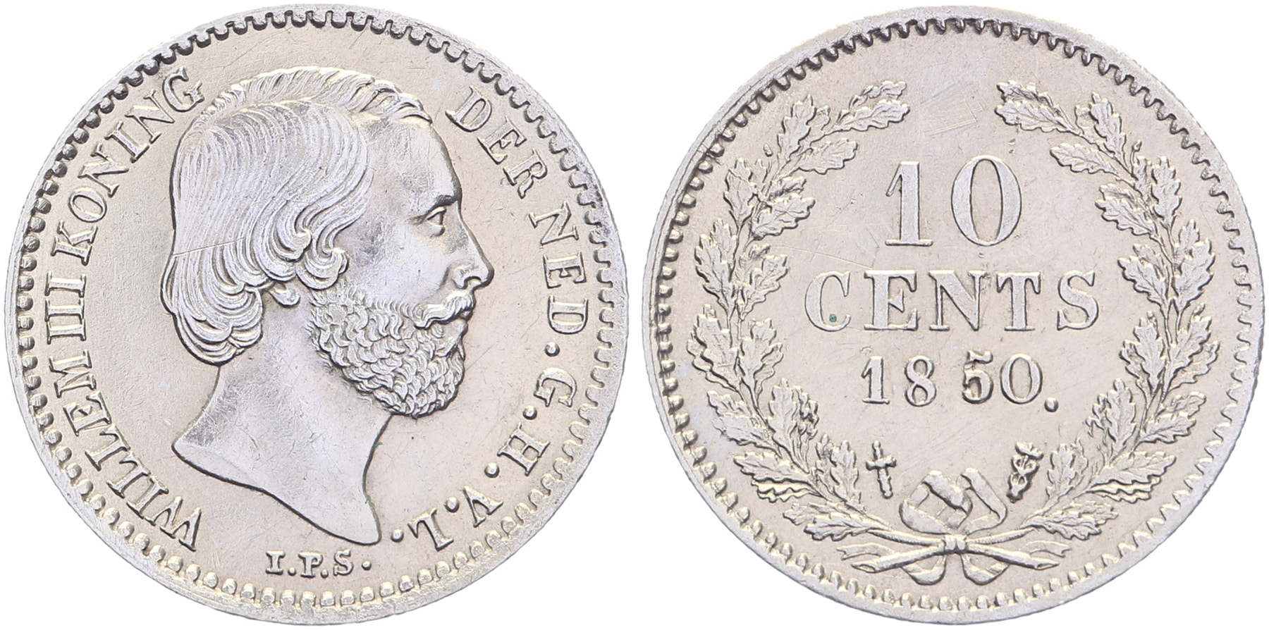10 Cents 1850 mmt. zwaard LSch. 521; Sch. 601 Ruim prachtig
