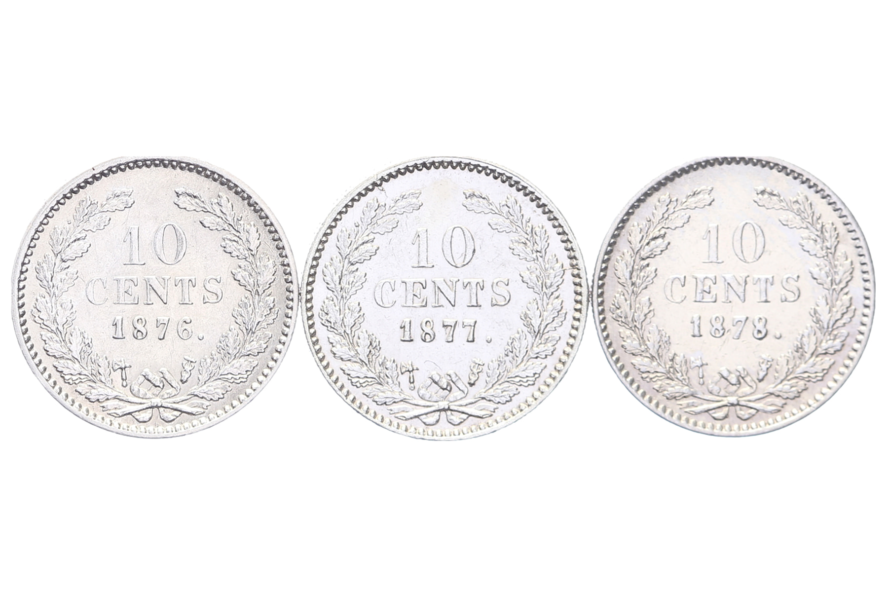 Lot (3) 10 Cents 1876, 1877 en 1878 LSch. 534-536; Sch. 654-656 Overwegend prachtig