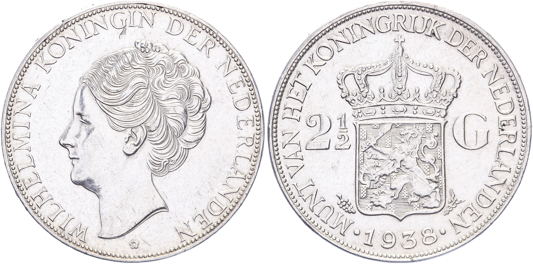 Rijksdaalder 1938 mmt. druiventros LSch. 675a; Sch. 790a. Grof haar, gepoetst Prachtig
