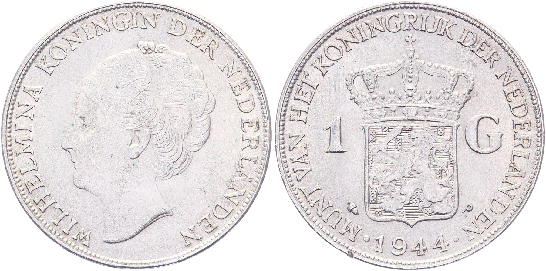 1 Gulden 1944P mmt. eikel LSch. 714; Sch. 1055 Zeer fraai
