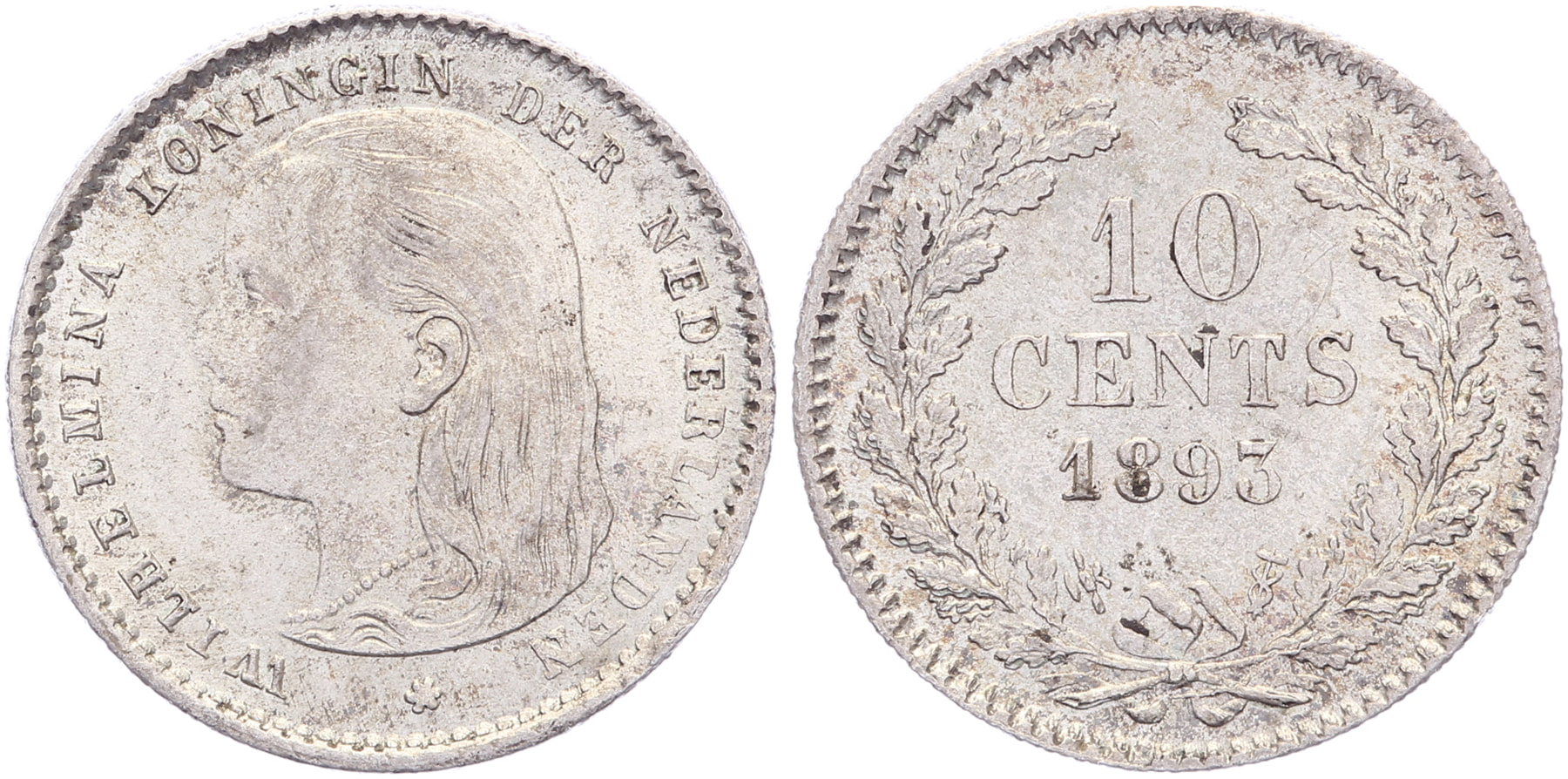 10 Cents 1893 mmt. hellebaard LSch. 778; Sch. 878 Vrijwel prachtig