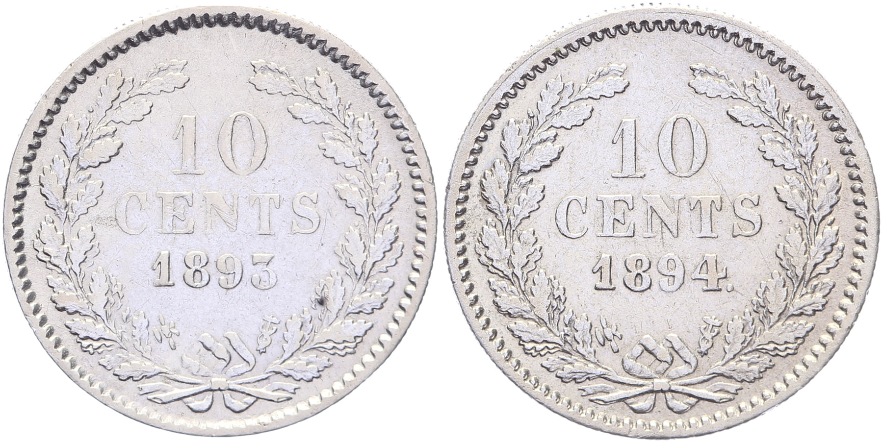 Lot (2) 10 Cents 1893 en 1894 LSch. 778, 779; Sch. 878, 879 Zeer fraai / Prachtig