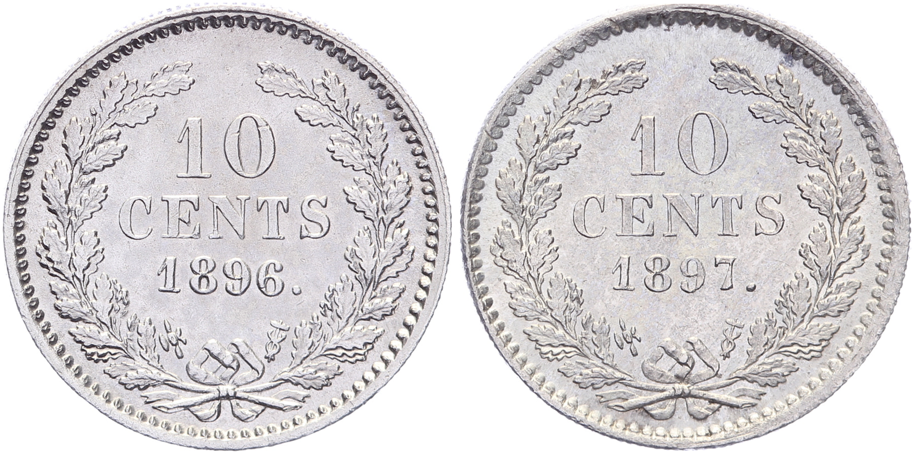 Lot (2) 10 Cents 1896 en 1897 LSch. 781, 782; Sch. 881, 882 Ruim zeer fraai