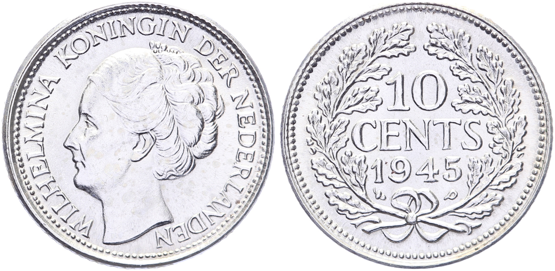 10 Cents 1945 mmt. eikel LSch. 814; Sch. 1060. Geslagen te Philadelphia FDC