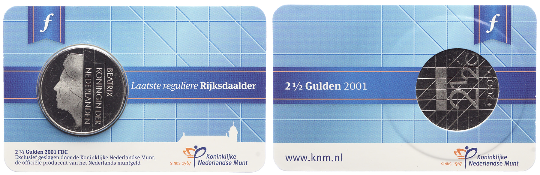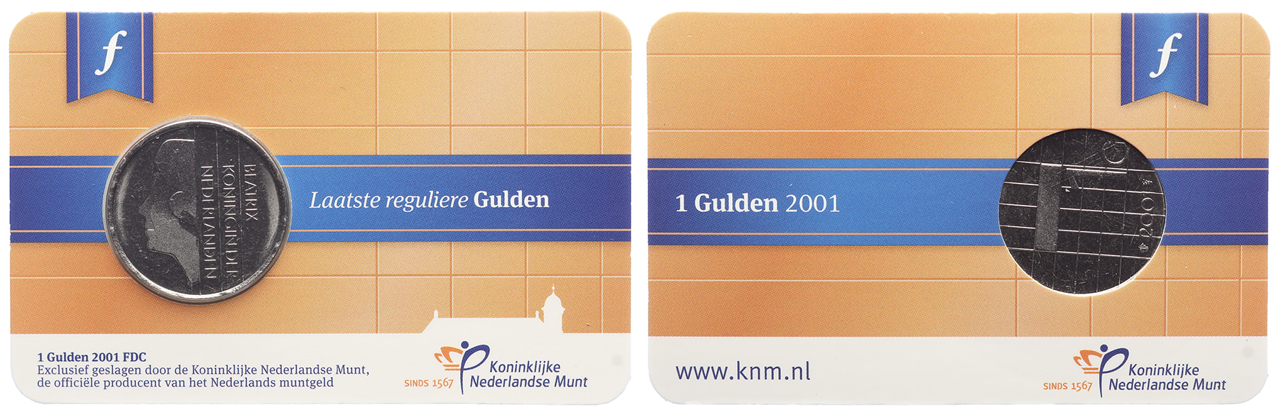 Lot (2) laatste gulden en rijksdaalder 2001 in coincard.
