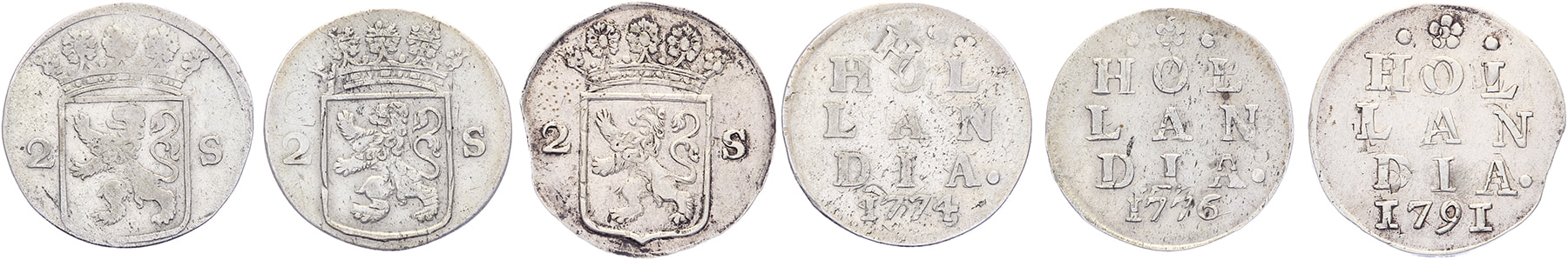 Lot (3) 2 Stuiver 1774, 1776 en 1791. CNM 2.28.118; HPM 79. Zeer fraai.