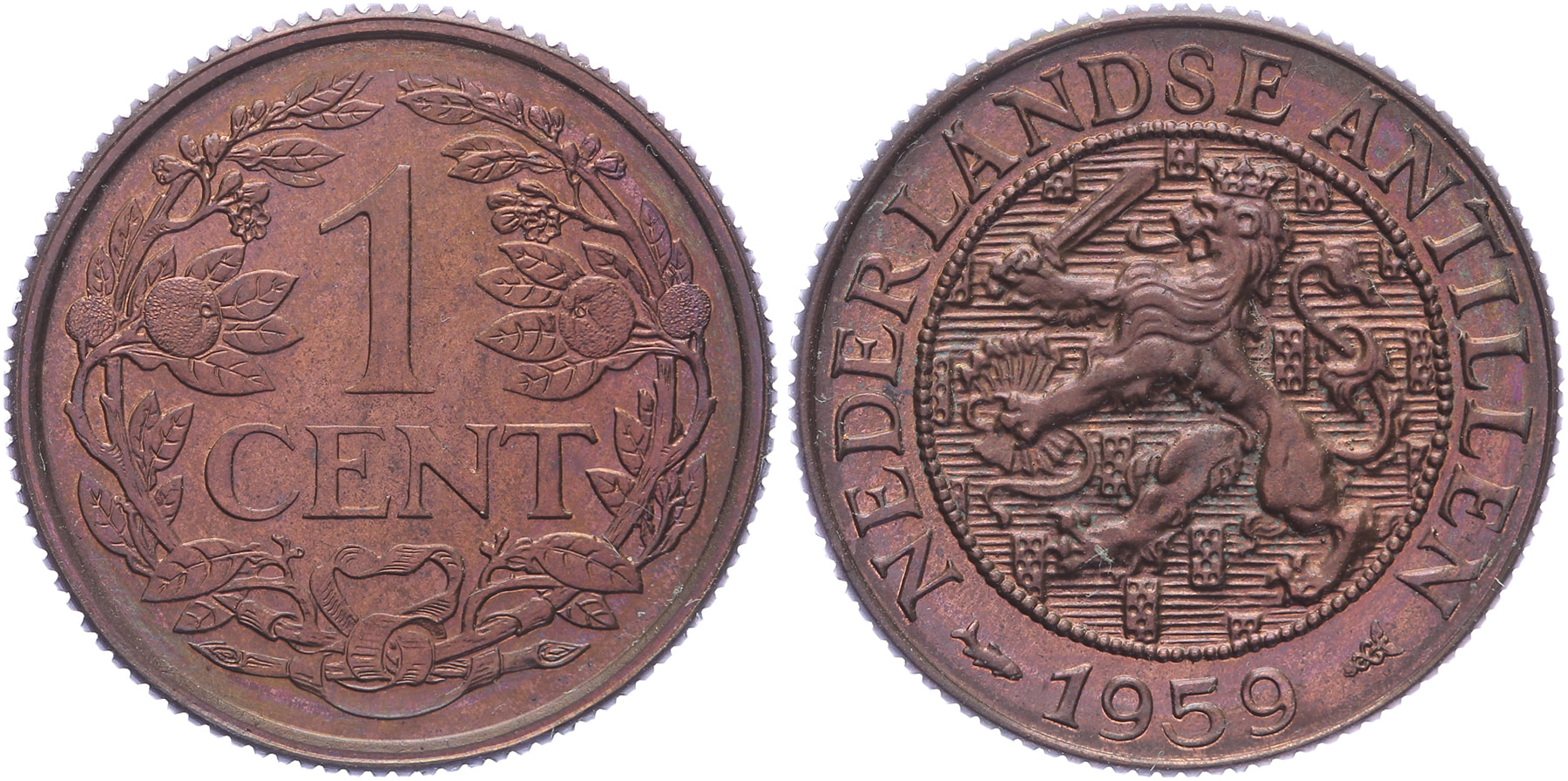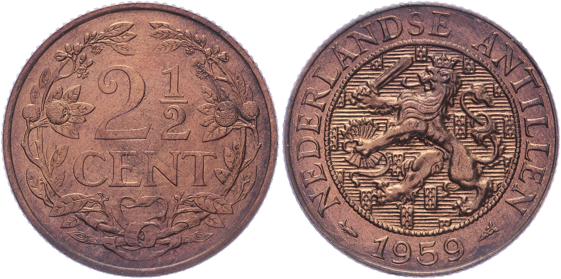 Lot (3) 1, 2 ½, 10 Cent 1959 mmt. vis. Sch. 1433, 1421, 1398. Met strip. Proof.