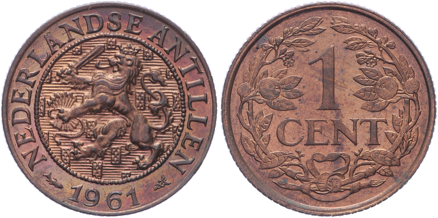 1 Cent 1961 mmt. vis. Sch. 1434. Met strip. Proof.
