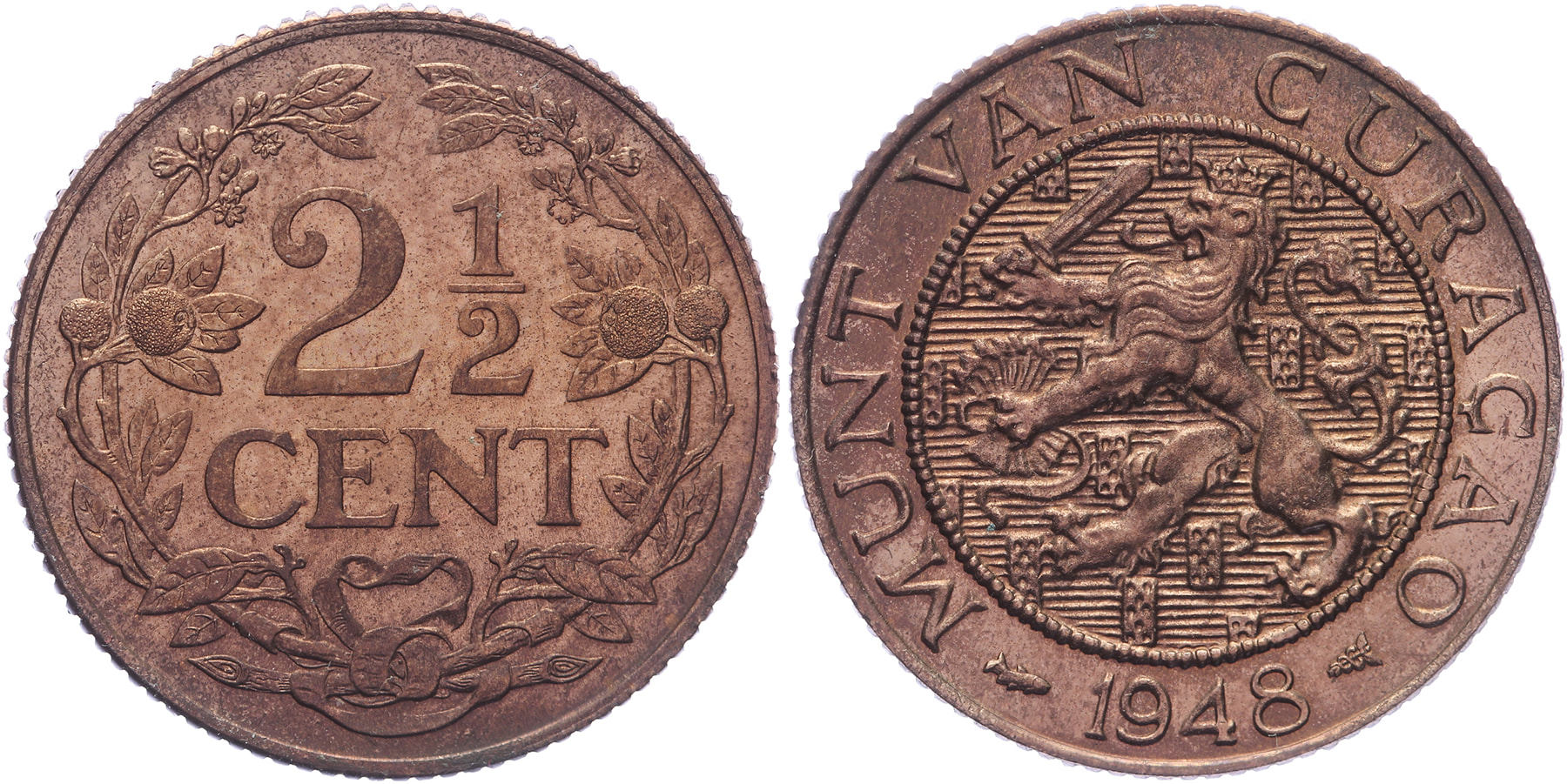 Lot (3) 2 ½, 5 en 10 Cent 1948 mmt. vis. Sch. 1341, 1339, 1338. Met strip. Proof.
