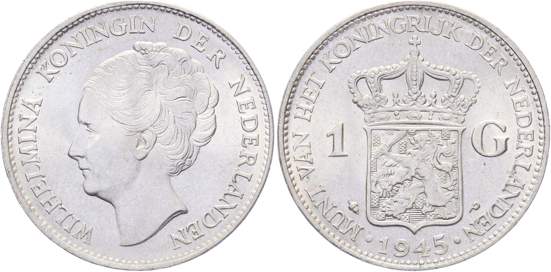1 Gulden 1945P mmt. eikel LSch. 715; Sch. 1056 FDC*