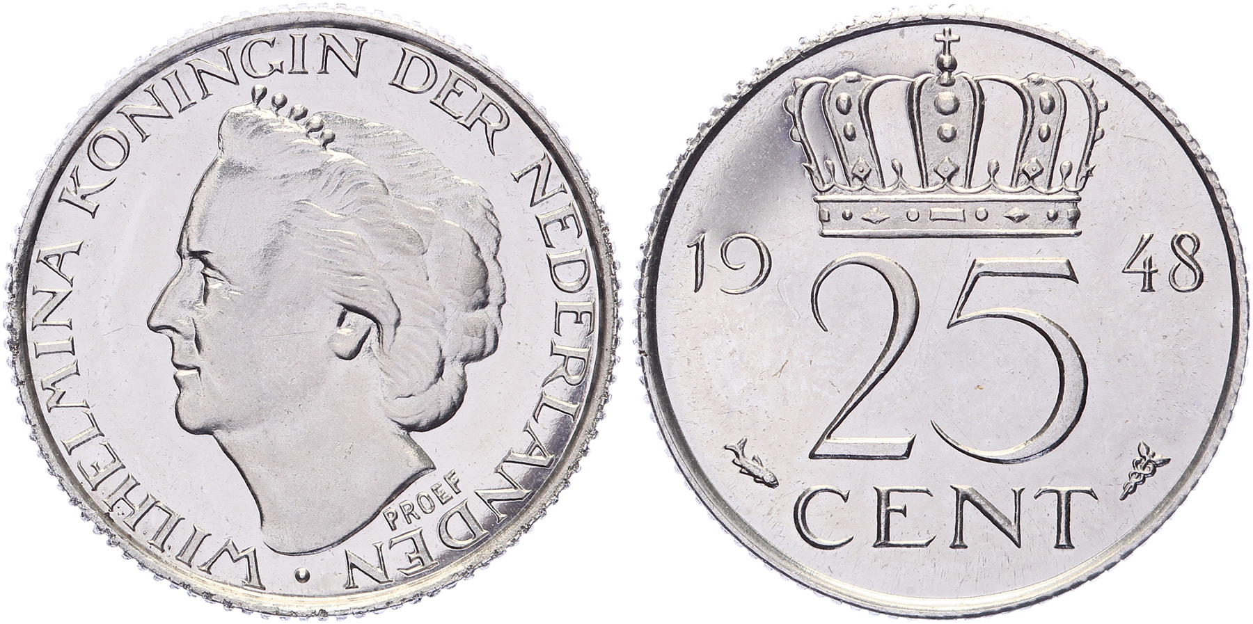 25 Cents 1948 mmt. vis LSch. 775a; Sch. 1074a. Zeldzaam. Proef in halsafsnede Proof*