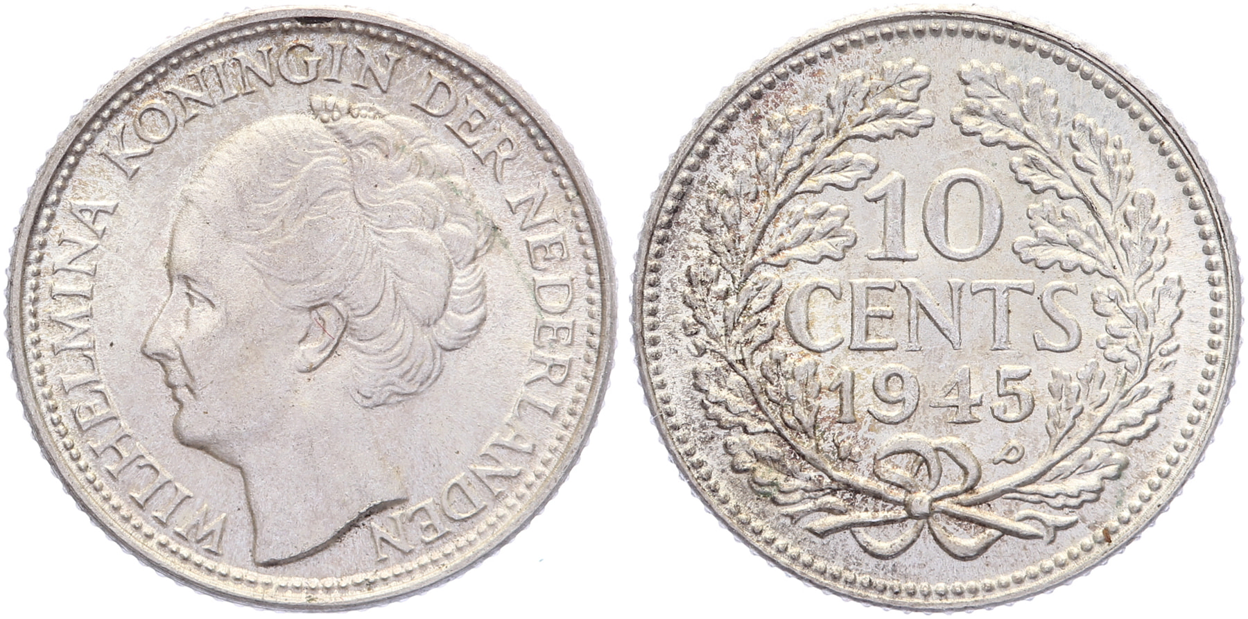 10 Cents 1945P mmt. eikel LSch. 814; Sch. 1060. Opkomend patina FDC*
