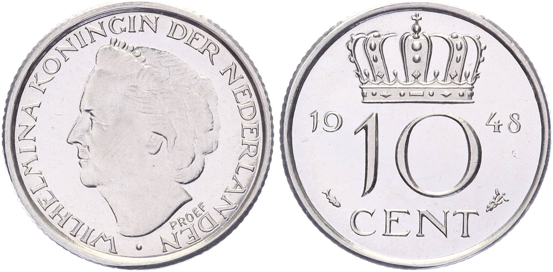 10 Cents 1948 mmt. vis LSch. 823a; Sch. 1075a. Zeldzaam.Proef in halsafsnede Proof