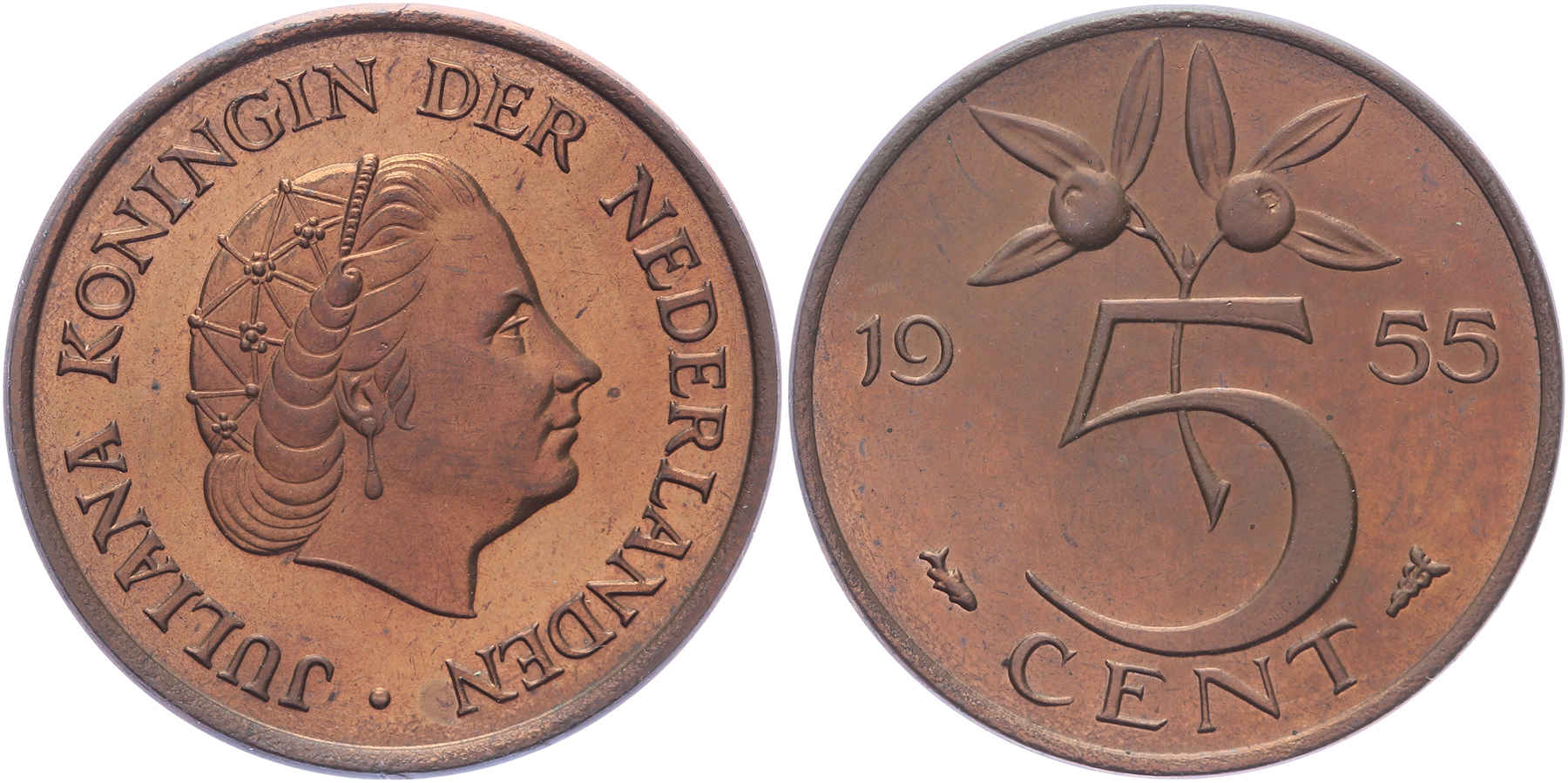 5 Cents 1955 mmt. vis LSch. 1063; Sch. 1205 Proof