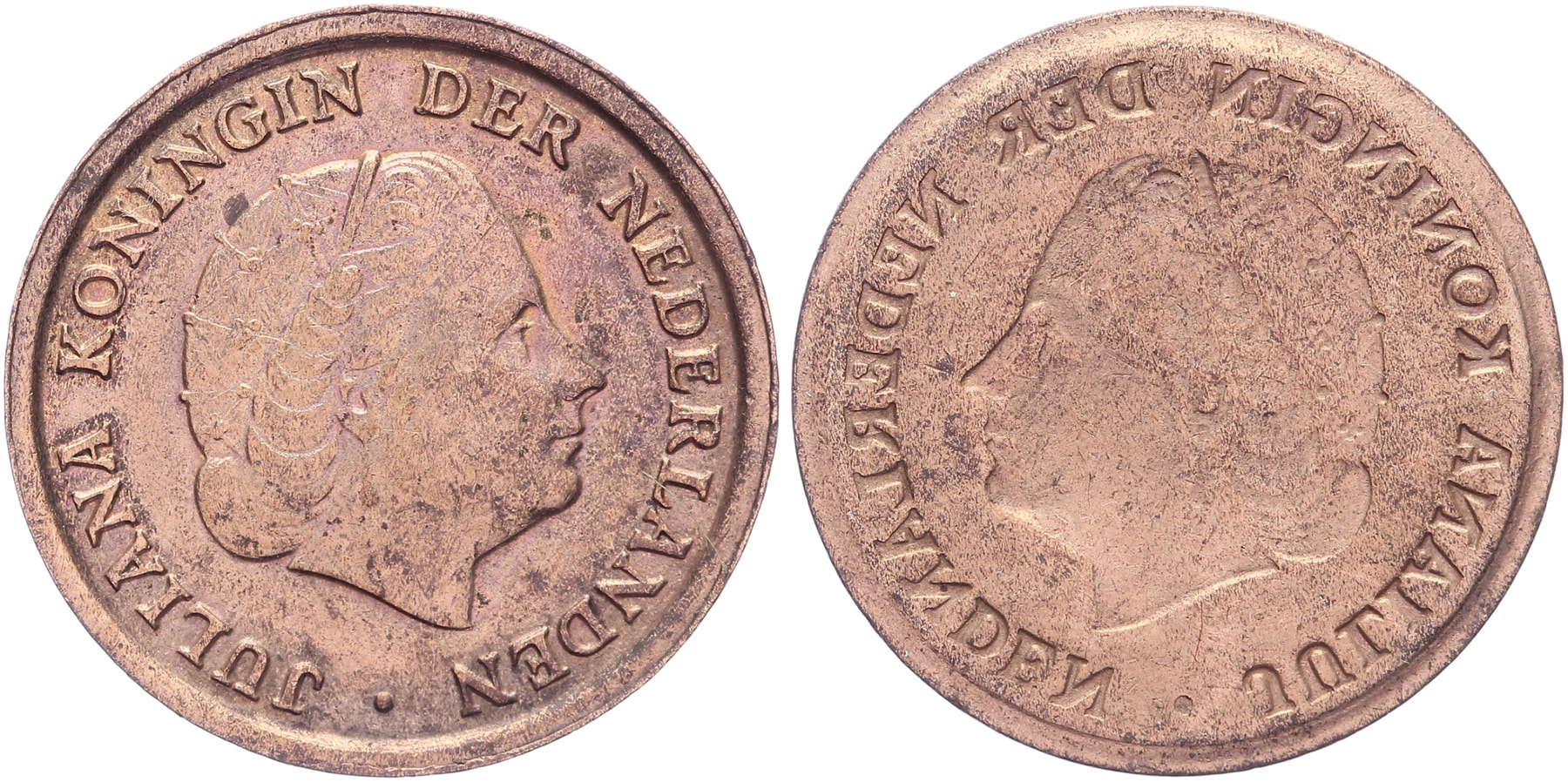1 Cent z.j. (type 1950-1980). Keerzijde hoofd Juliana en omschrift incuus [1,90 gram]. Prachtig.