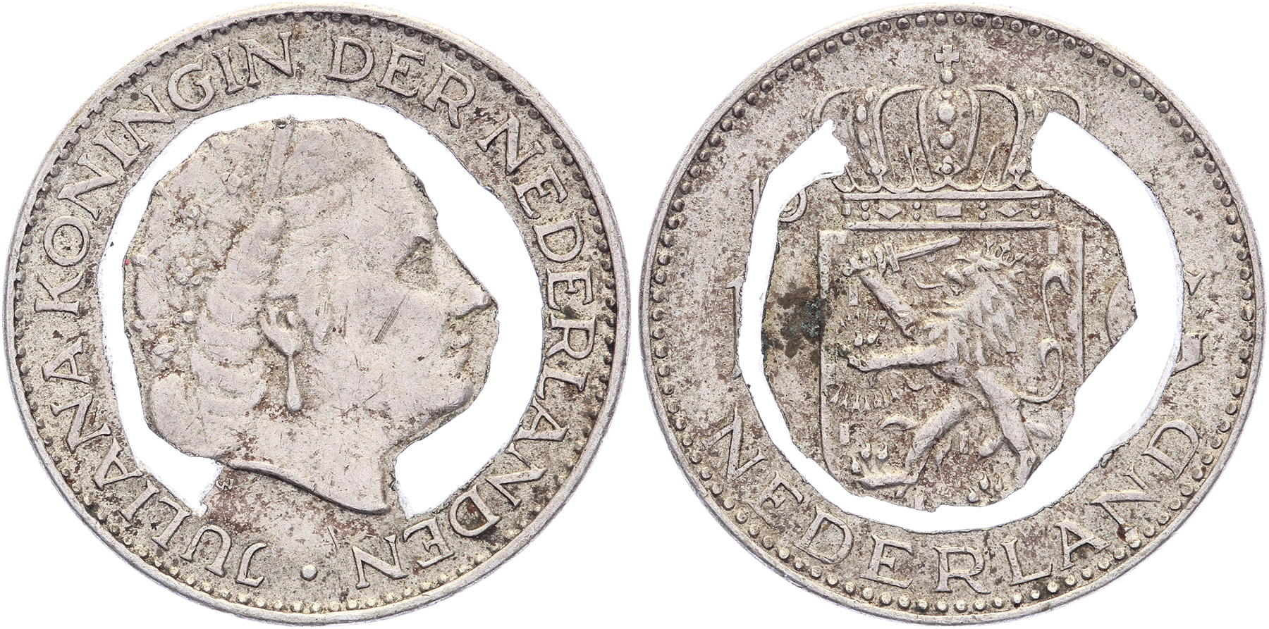 Zilveren gulden 1965. Hoofd Juliana uitgefreesd. Zeer fraai.