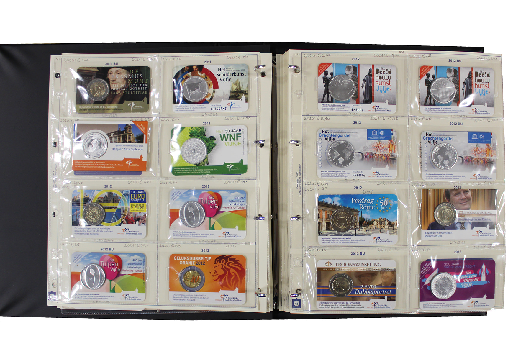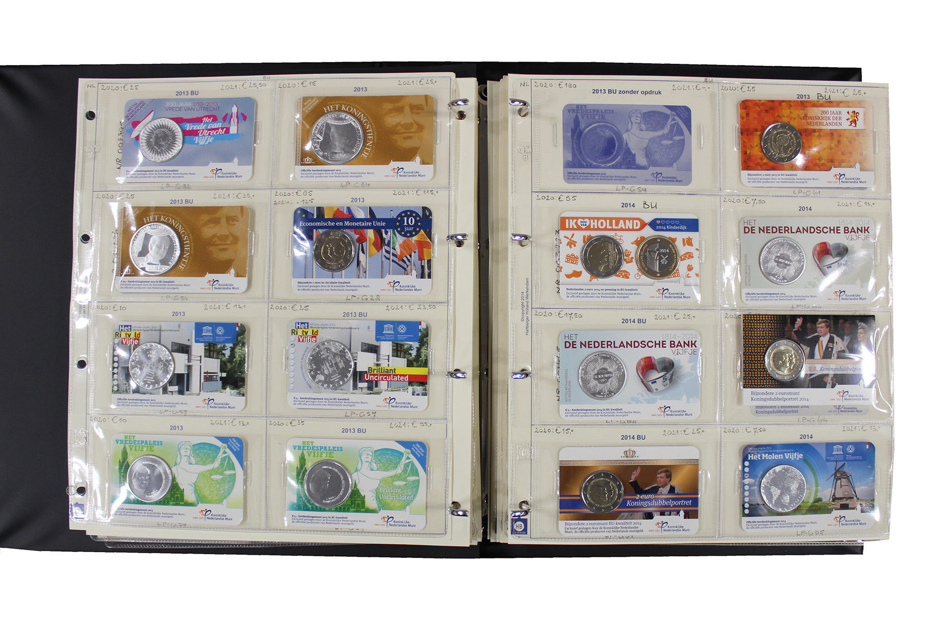 Bordeauxrood Importa-album met 92 (euro)coincards. O.a. 5 euro ‘Europa’ 2004 en 2 euro 2011 ‘Erasmus’.